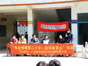 2009-03-17信守著感恩博愛、熱情助人、承擔社會責任的信念,廣州集佳知識產權代理有限公司組織員工和東莞辦事處在2009年3月的一個星期六組織了扶助清新縣石潭鎮雷二小學的獻愛心活動。