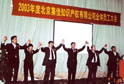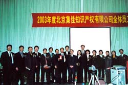 2003年,對于集佳來說,是向國際化企業邁進的關鍵一年,集佳人上下同心、拼搏奮進,戰勝了“非典”對我們的巨大挑戰和代理機構放開的嚴峻考驗,再次成為商標代理量的全國第一。集佳合伙人會議主席于澤輝在2003年度工作報告中,詳細闡述了集佳在過去的一年里取得的成績和進步,按部門總結了2003年工作的優勢和不足,并詳細分析了行業前景、國際環境和集佳的優勢與發展潛力,使集佳人對在5年內把集佳發展成為世界前100名知識產權代理機構的目標充滿信心。