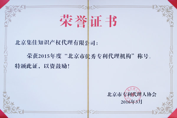 3月9日上午,首都知識產權服務機構工作會議在北京花園飯店舉行。北京市知識產權局局長汪洪、副局長李鐘、國知局條法司董琤副司長、北知局專利管理處處長王徳道、副處長黨建新、北京市專利代理人協會副會長李毅等領導出席了會議并講話。會議期間對北京市優秀專利代理機構進行了表彰并頒獎,集佳再獲殊榮被評為“2015年度北京市優秀專利代理機構”。集佳合伙人王學強代表領取了獎杯和證書。