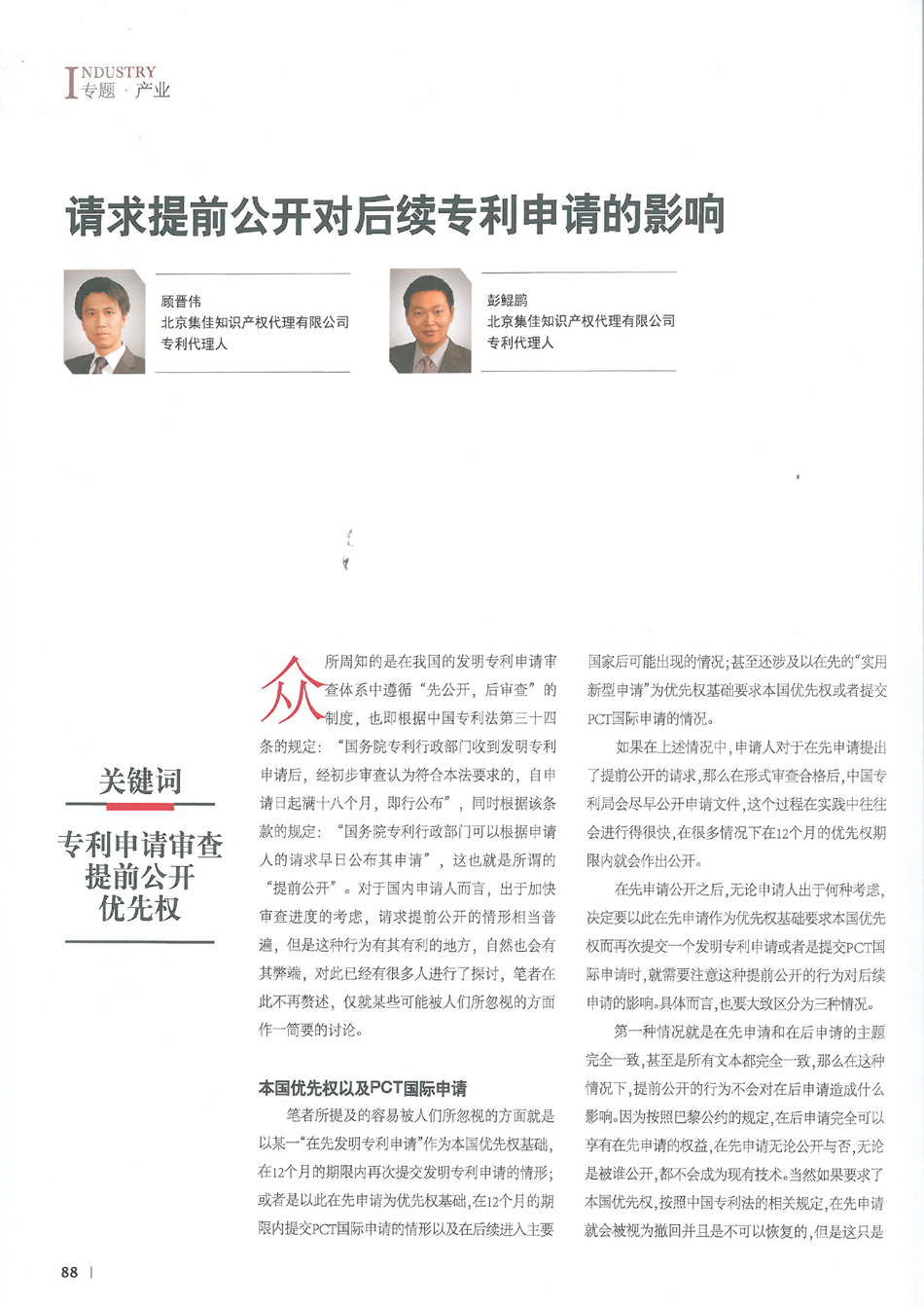集佳文章《請求提前公開對后續專利申請的影響》在《中國知識產權》發表