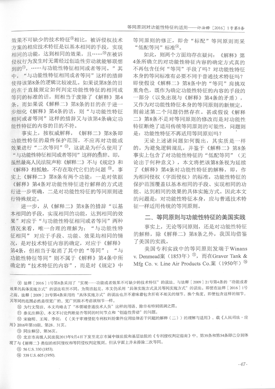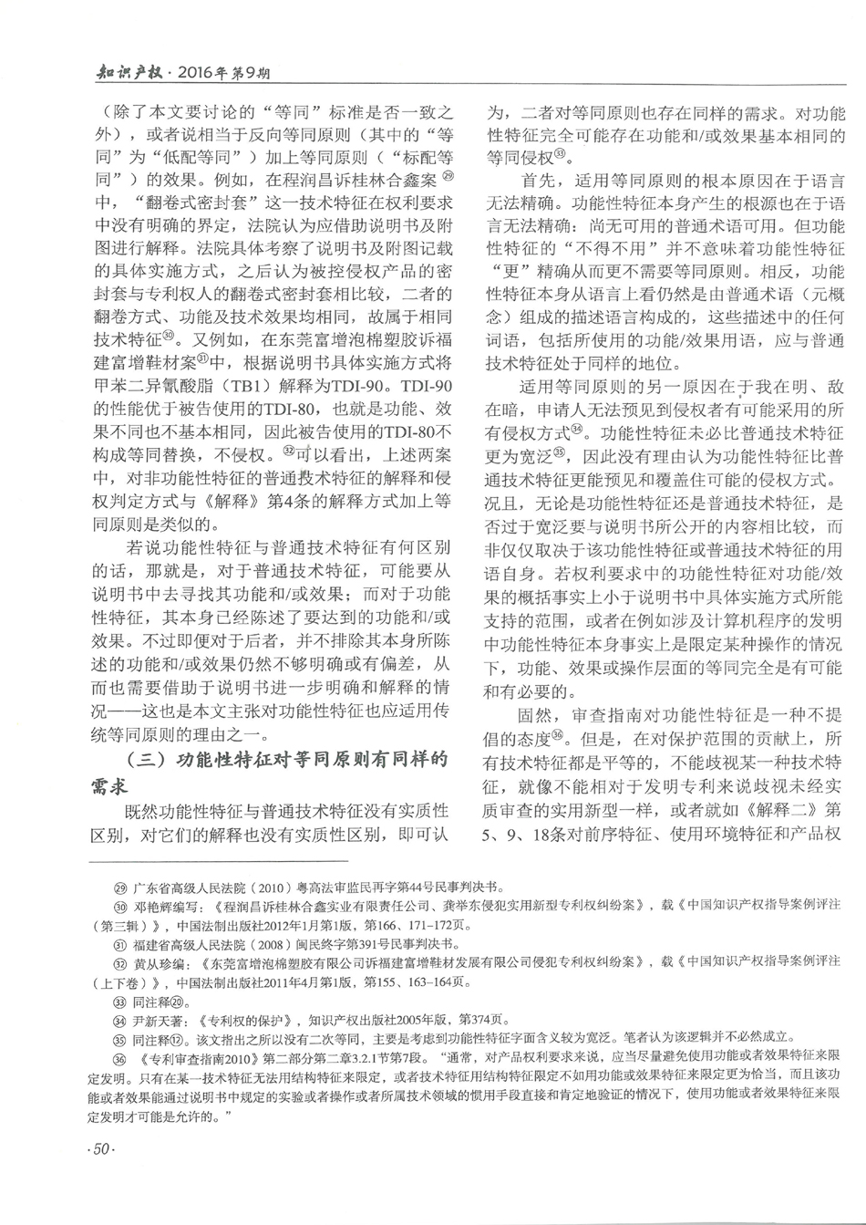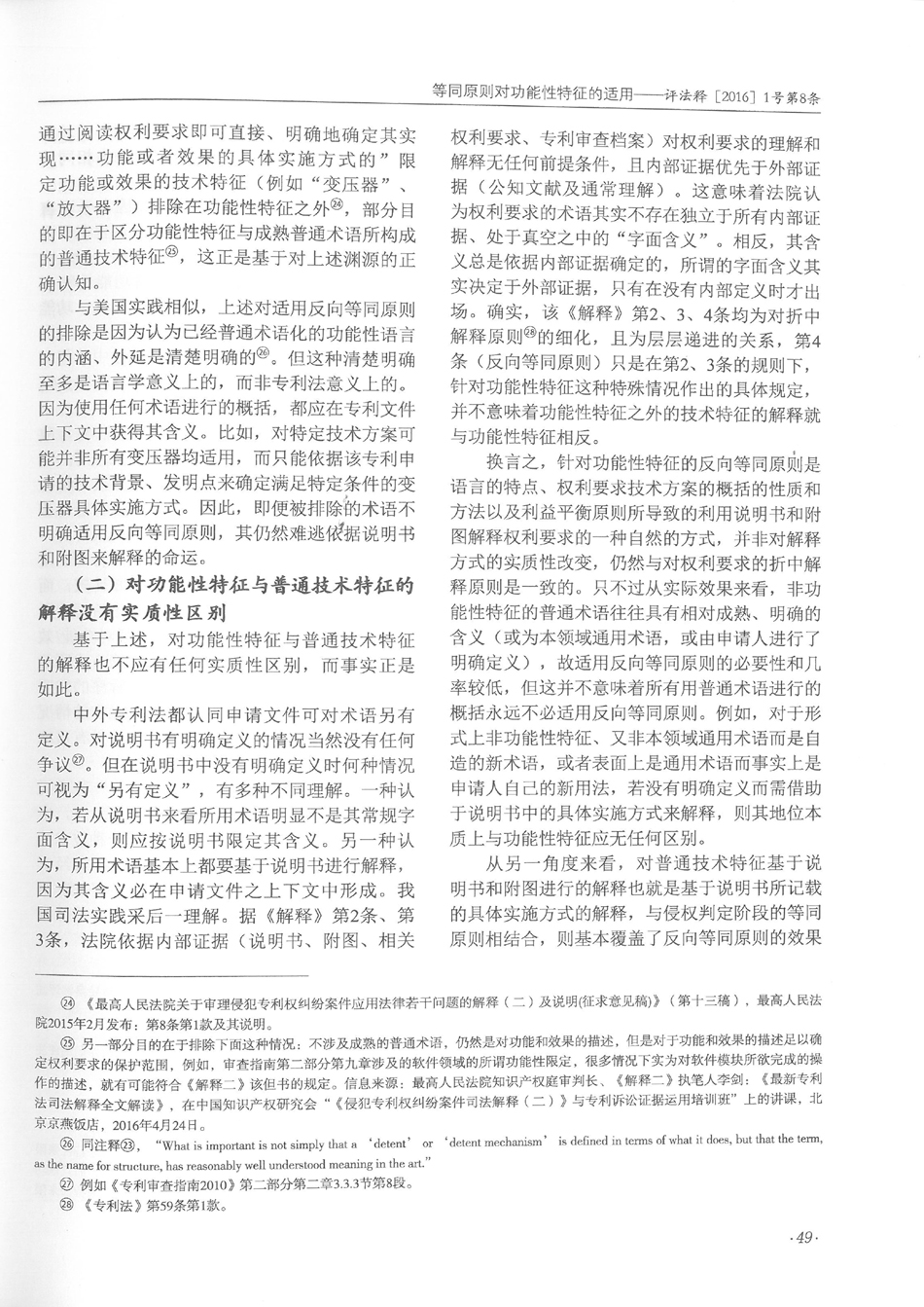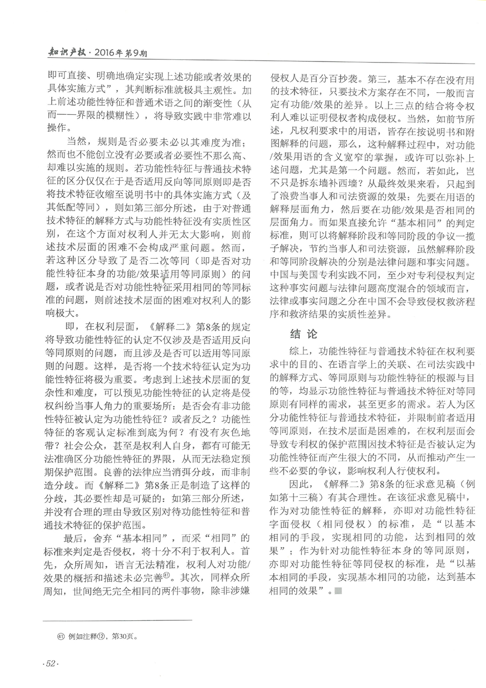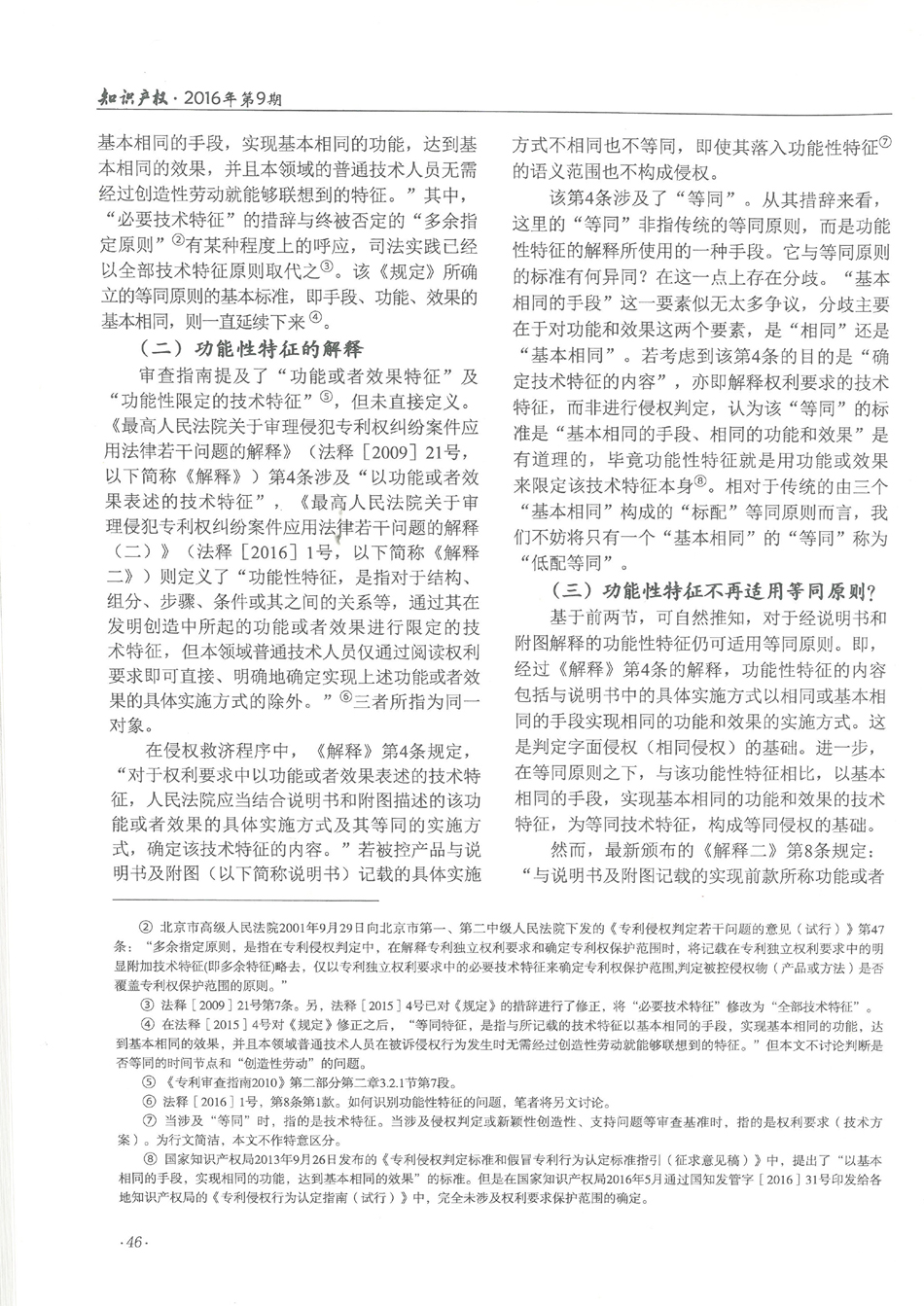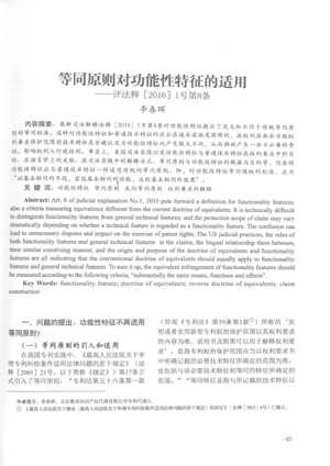 集佳文章《等同原則對功能性特征的適用--評法釋[2016]1號第8條》在《知識產權》發表