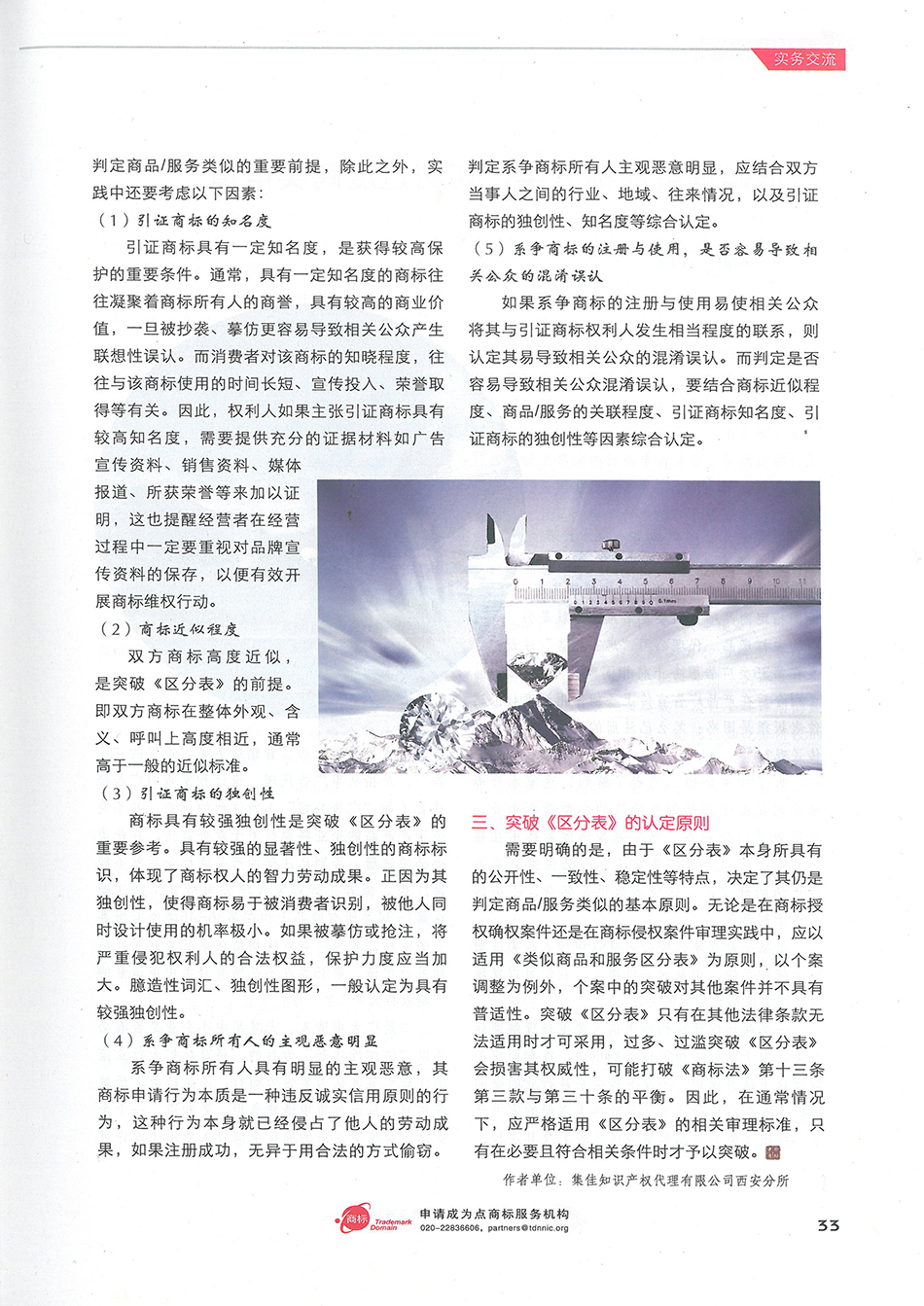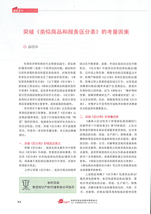 集佳文章《突破<類似商品和服務區分表>的考量因素》在《中華商標》發表