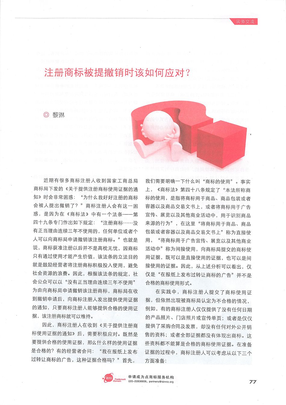 集佳文章《注冊商標被提撤銷時該如何應對?》在《中華商標》發表