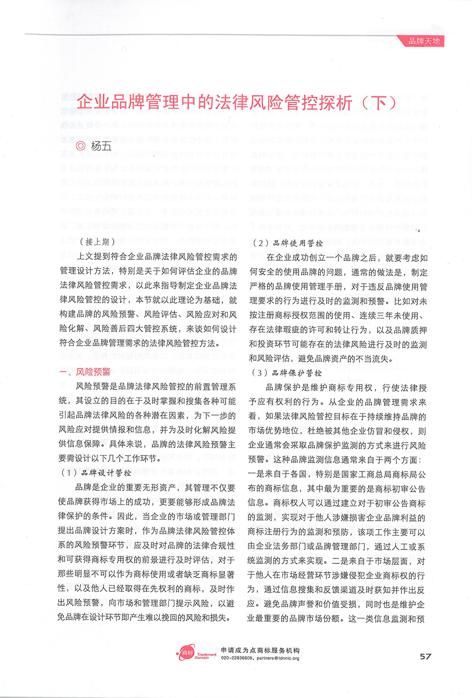 集佳文章《企業品牌管理中的法律風險管控探析(下)》在《中華商標》發表