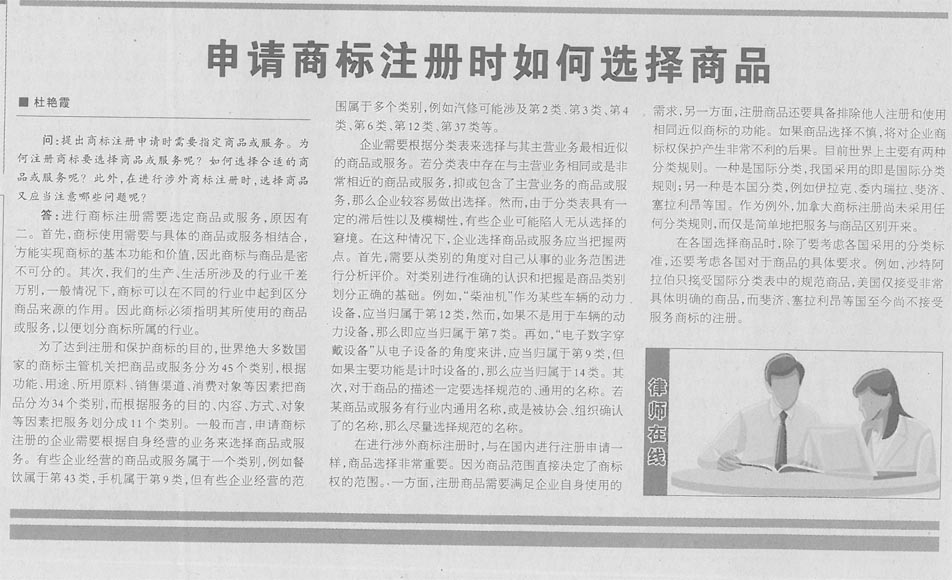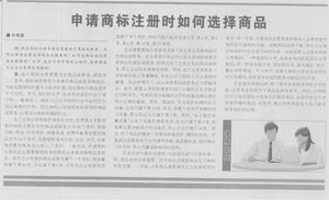 集佳代理人文章《申請商標注冊時如何選擇商品》在《中國貿易報》發表