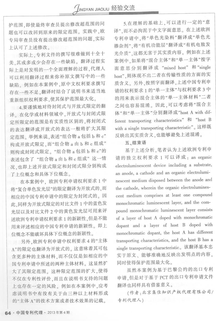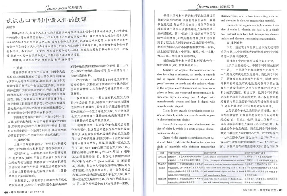 集佳代理人文章《談談出口專利申請文件的翻譯》被《中國專利代理》發表