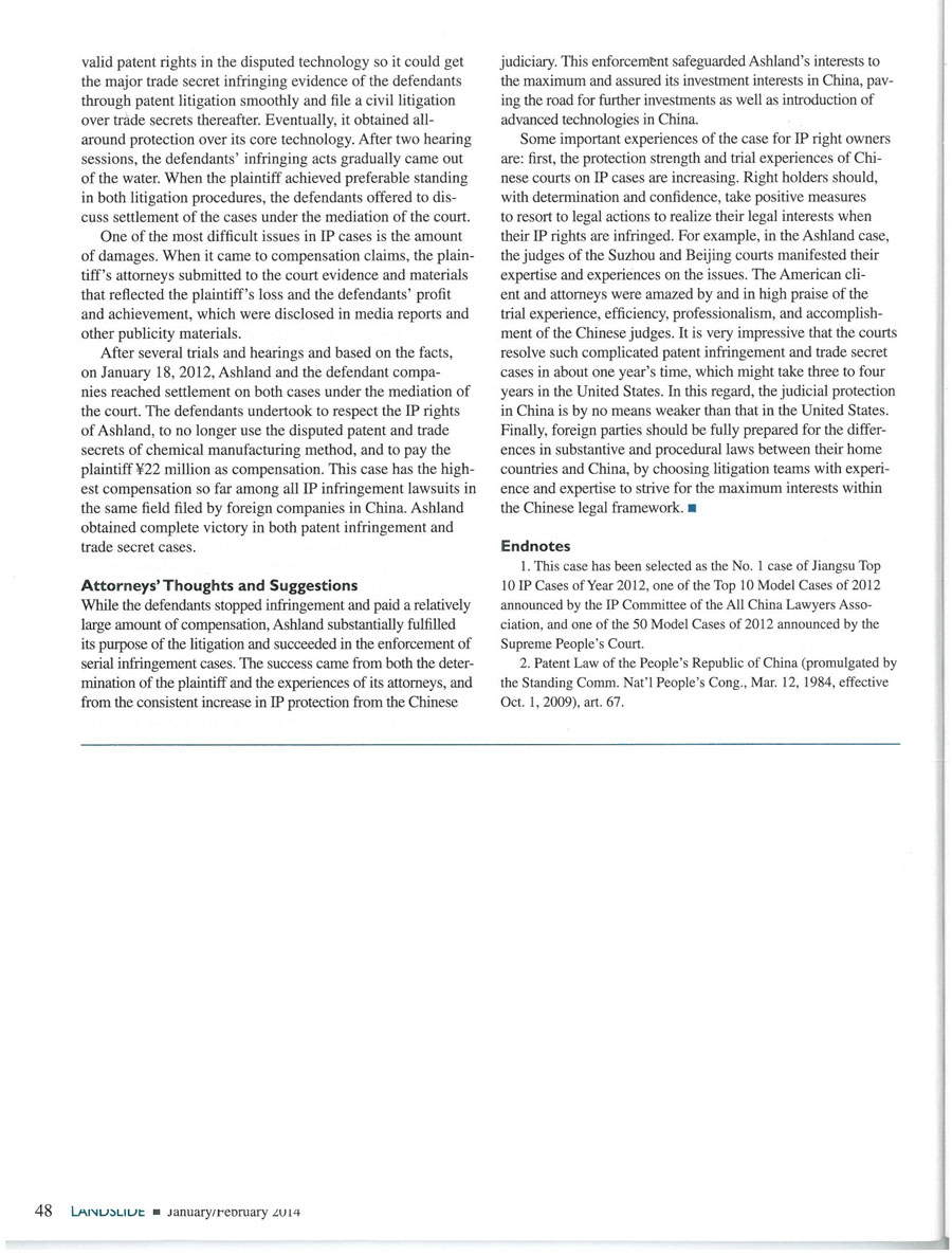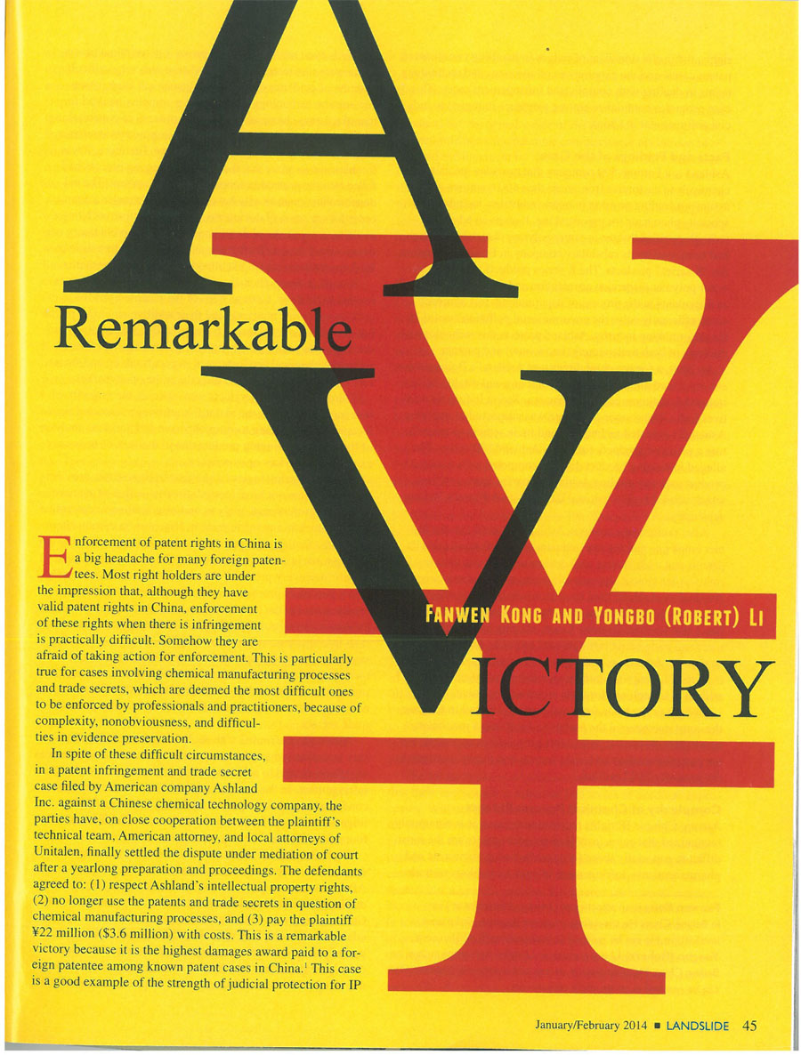 集佳律師文章 A Remarkable Victory 在 LANDSLIDE 雜志發表