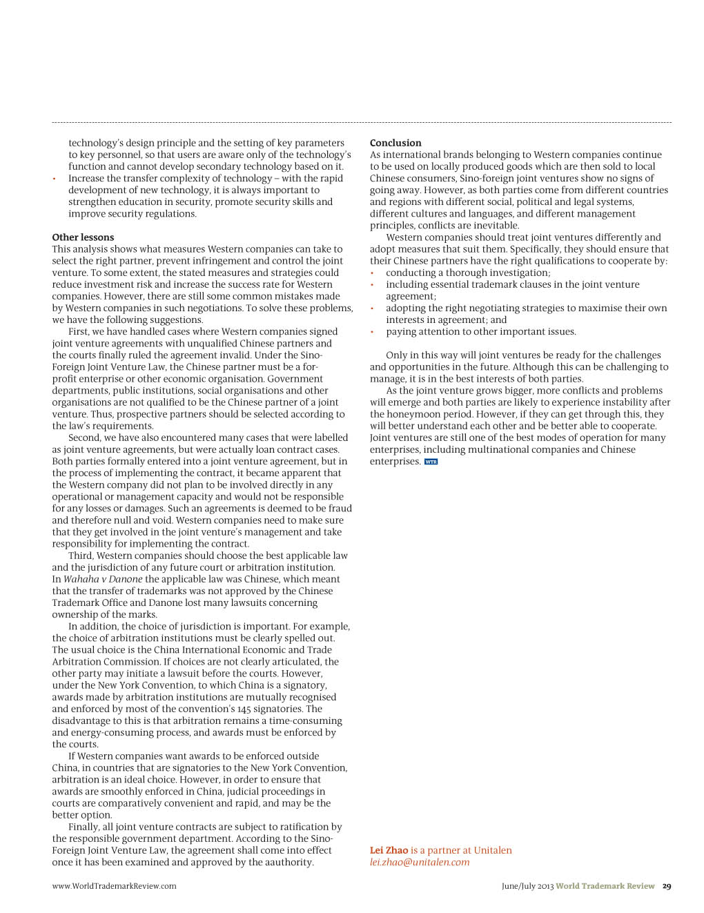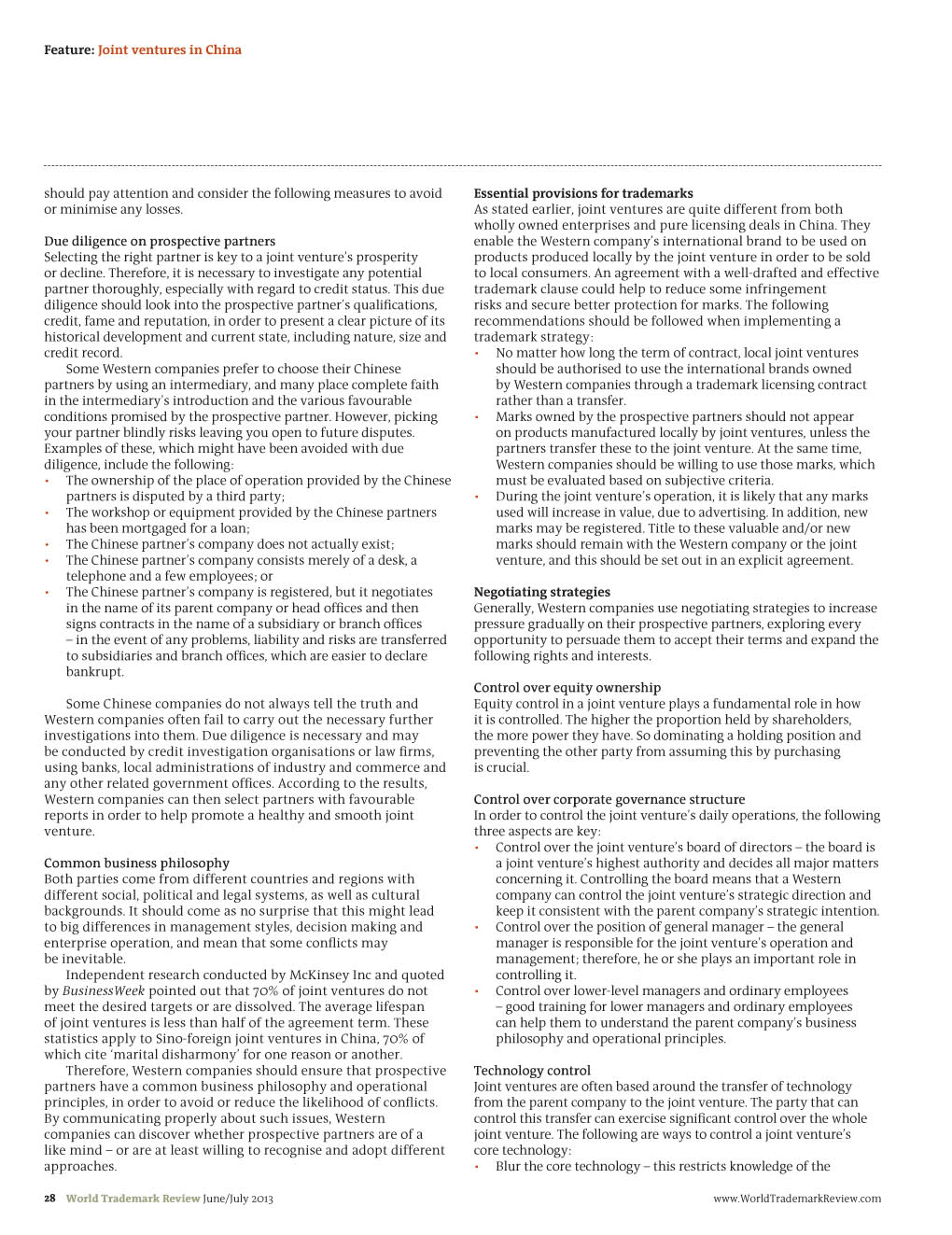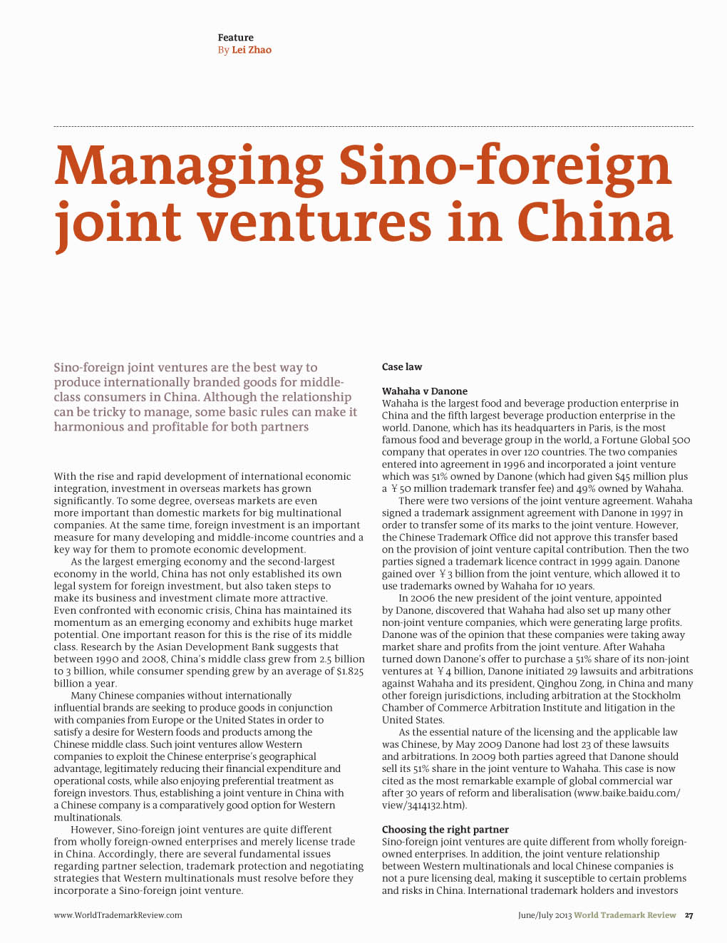 《Word Trademark Review》:Managing Sino-foreign joint ventures in China