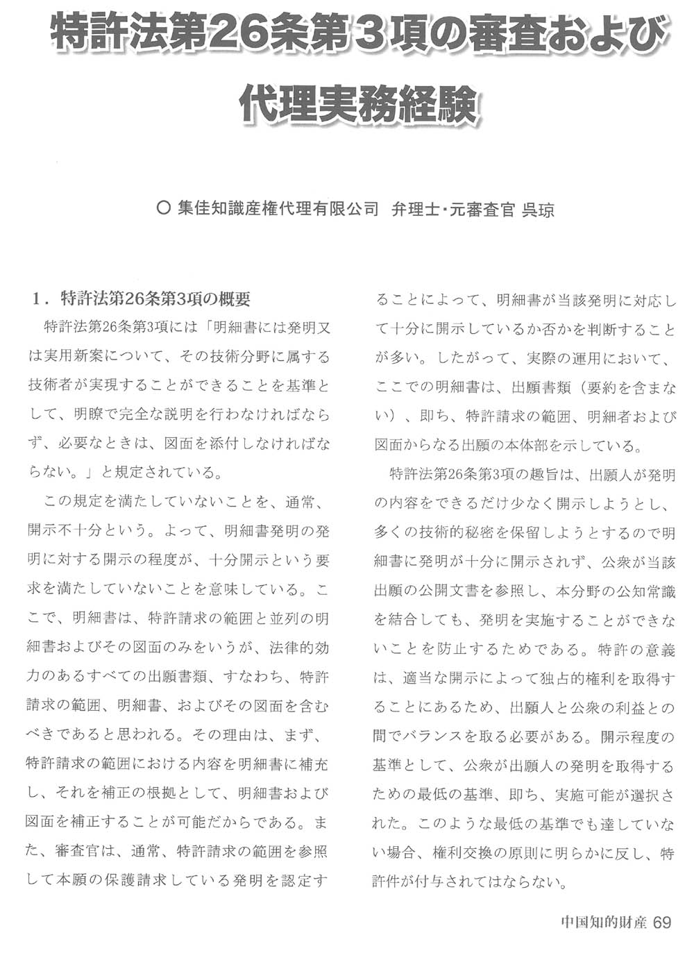 《China IP》:特許法第26條第3項の審査および代理実務経験
