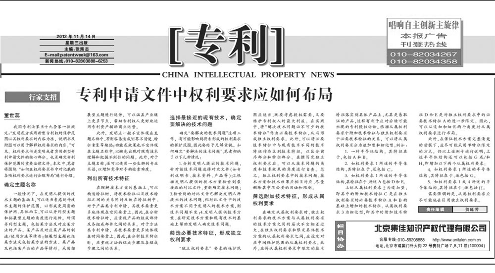 《中國知識產權報》:專利申請文件中權利要求應如何布局