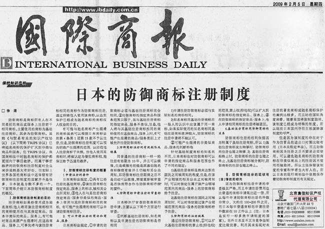 《國際商報》:日本的防御商標注冊制度