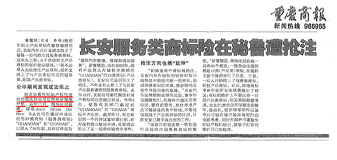 《重慶商報》:長安服務類商標險在秘魯遭搶注