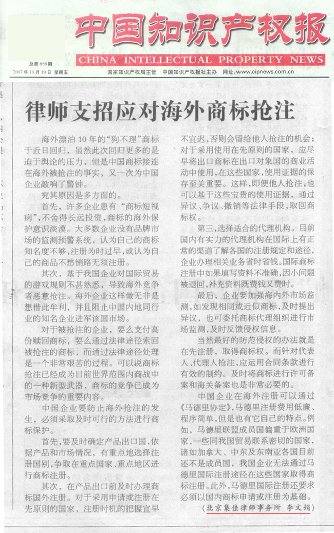 法律聲明 Unitalen Mail Box ?2016 Unitalen Attorneys at Law 版權所有 集佳知識產權代理有限公司 京ICP備11033076號 京公網安備11010502020670