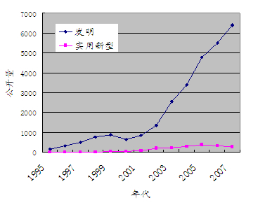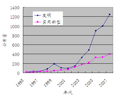 圖2 從1995年以來中國企業在中國申請的專利的公開量的變化