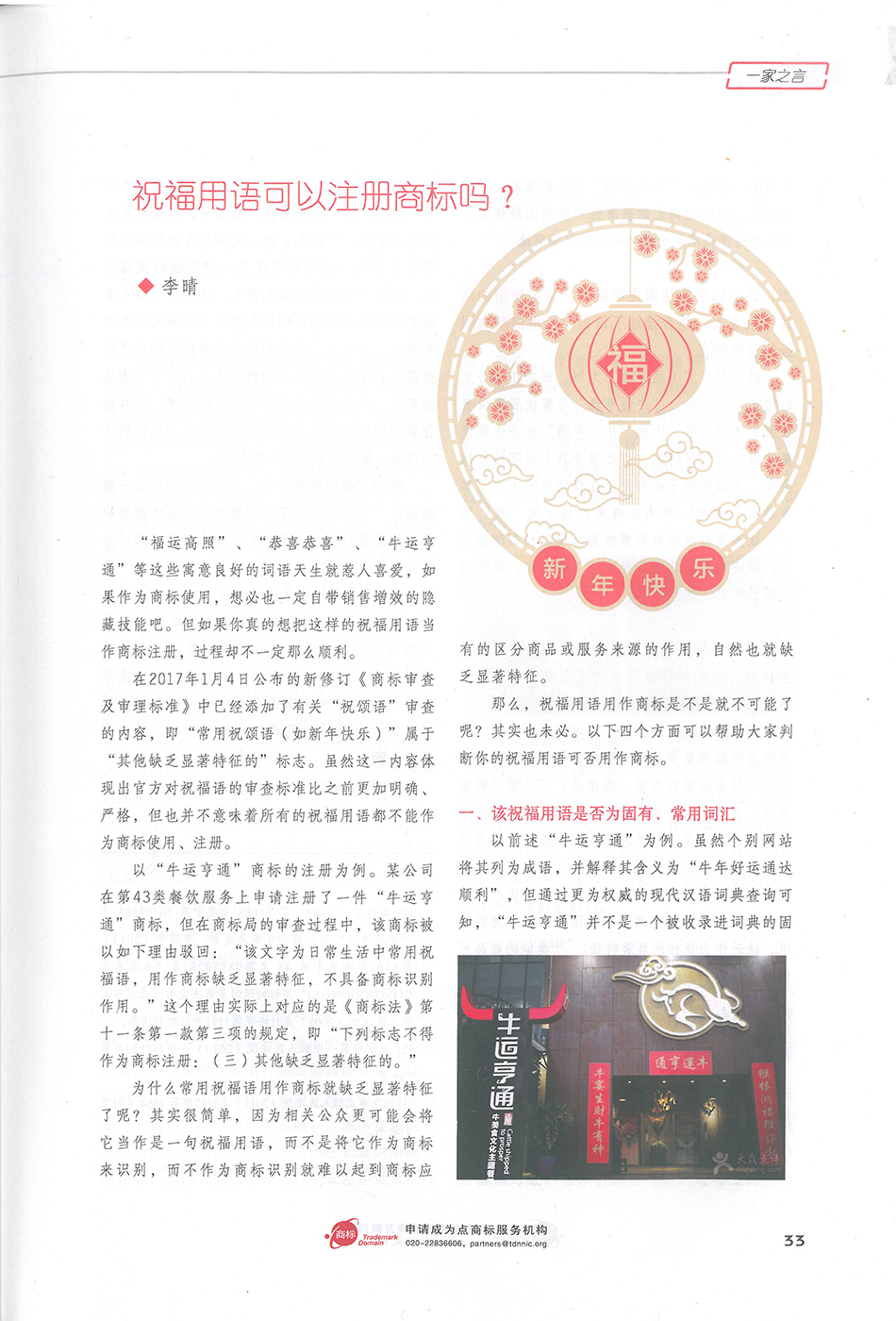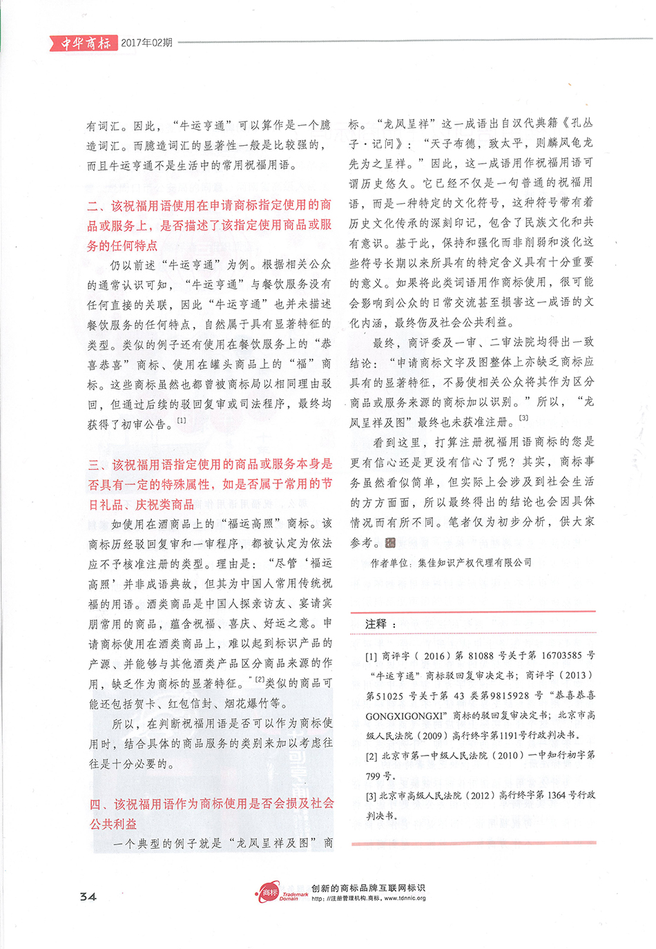 集佳文章《祝福用語可以注冊商標嗎》在《中華商標》發表