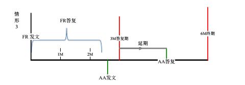 (2)情形2、申請人于FR發文日起的2個月內完成答復,審查員在3個月答復期之后發出AA, 則AA的延期費自AA發文日起算。