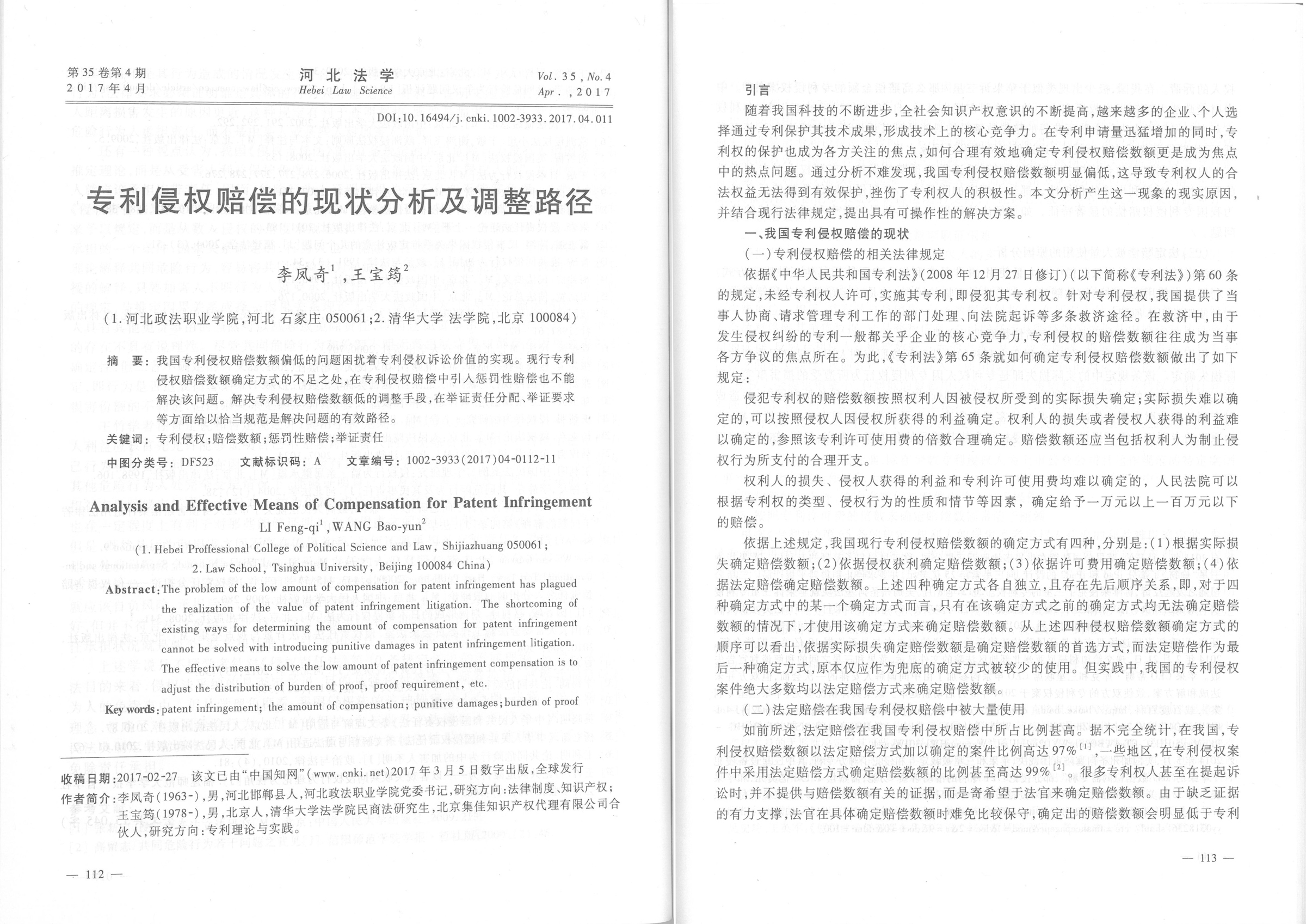 集佳文章《專利侵權賠償的現狀分析及調整路徑》在《河北法學》發表