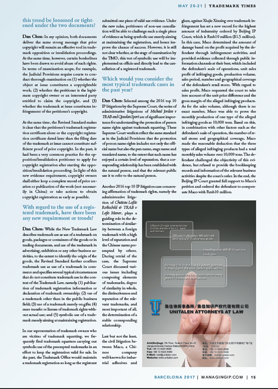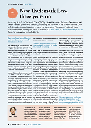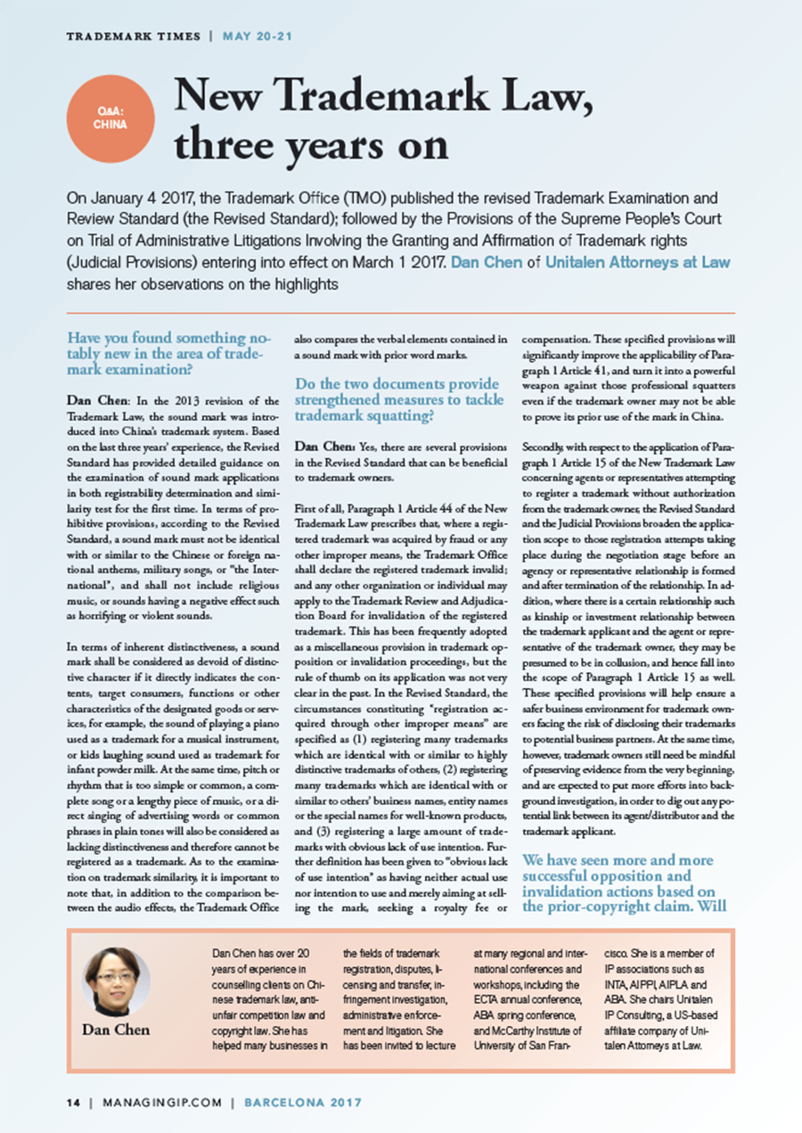 集佳合伙人陳丹律師文章在 INTA 會刊 Trademark Times 發表