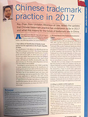 集佳合伙人趙雷律師文章在 INTA 會刊 Trademark Lawyer 發表