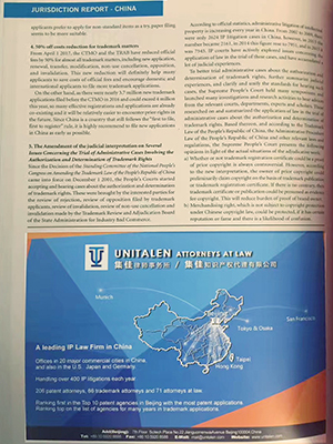 首頁 > 集佳知識產權代理有限公司 > 理論研究 > 媒體報道 > 集佳合伙人趙雷律師文章在 INTA 會刊 Trademark Lawyer 發表