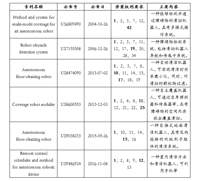 2017年4月18日,美國掃地機器人公司iRobot先后向美國國際貿易委員會(ITC)提起了“337調查”申請,指控包括3家中國公司在內的共11家企業侵犯了其在美的6項專利中一項或多項權利要求,并要求有限排除令(limited exclusion order)及停止侵權(cease and desist order)。
