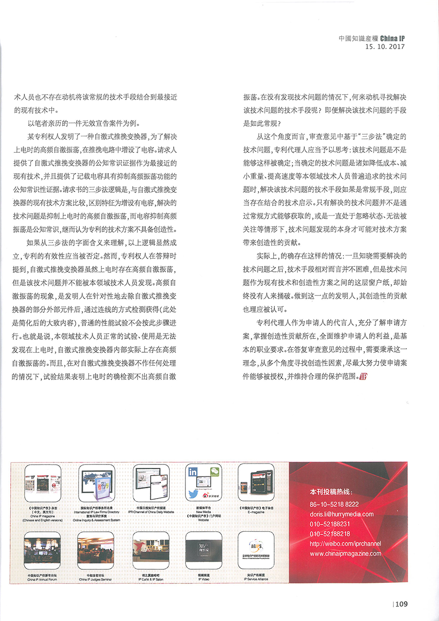 集佳文章《技術問題-現有技術與創造性方案之間的那層窗戶紙》在《中國知識產權》發表