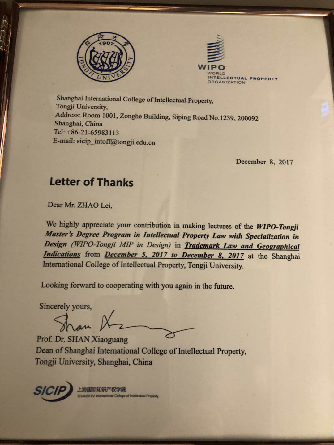 2017年12月5日到8日,集佳合伙人趙雷律師應邀前往上海,受聘兼職教授為首屆上海國際知識產權學院的2017屆新生進行授課講學。上海國際知識產權學院成立于同濟大學,是世界知識產權組織第一次同中國高校攜手合作,為培養知識產權國際化人才開展的世界知識產權組織—同濟大學聯合培養知識產權法碩士項目。本屆新生匯集了包含中國在內的21個國家的學生,涵蓋了非洲、歐洲、拉美和亞洲的多個國家和地區,其中一部分是其所在國家商標局、版權局的現任審查員、仲裁員、律師。