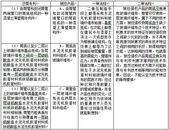 首先,權利要求明確記載筒管玻璃纖維布層數為“不少于二層”,實際上該限定本身已排除一層的實現方式。其次,還應當注意說明書對于權利要求的解釋作用對等同特征認定的約束作用,客觀上,涉案專利說明書明確記載了“可以少到僅兩層”,并基于此強調其技術效果。 因此,在等同特征判斷時,不應當再將權利要求限定已經排除的一層的實現方式認定為“不少于二層”的等同特征,以有效平衡社會公眾的權益。 此外,該案二審判決體現了另外一個觀點:由于早于本案專利發明存在著筒底及筒管組成混凝土薄壁筒體構件的公知技術,所以,被控侵權物在筒管上使用一層玻璃纖維布更接近于公知技術。沿用與公知技術相近似的技術方案,屬于公眾的權利。盡管該觀點與等同特征的判斷無直接關聯,但在該判決中進一步依職權從現有技術抗辯的角度進行了評述,無疑為事實認定提供了另一維度的支撐。