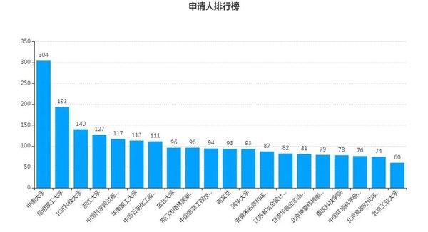 如上分析,在我國固廢領域,國內申請人占據絕對主導地位(96%以上)。從圖3具體來看,除了中南大學(304件)和昆明理工大學(193件)領先較多外,申請量在申請人維度并沒有明顯的集中。注意到前六位申請人均為院校,這表明在整個固廢領域的技術研發上,高等院校占據著非常重要的地位。綜合來看,固廢領域的技術創新尚沒有出現絕對的巨頭。