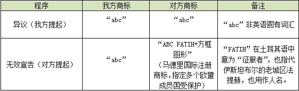 具體到本案,對方主張我方“abc”商標與其名下多件“ABC”商標相同,“abc”完整包含于其在先商標“ABC FATIH”,雙方商標構成相同、類似商品上的近似商標,易造成消費者混淆誤認,并主張其商標是知名商標,我方對其商標處于明知、應知的狀態;此外,我方此前已對其歐盟商標“abc”提起異議,因此認為我方的商標注冊具有“惡意”。