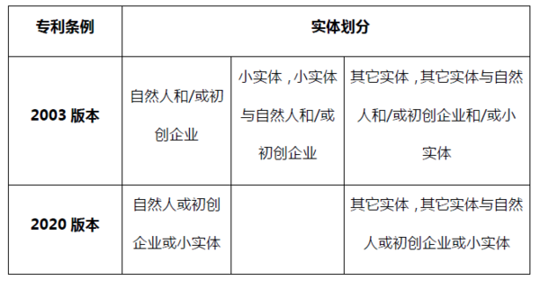 (1)新修訂條例取消了現行的自然人/初創企業、小實體和其它三種分類方式,不再將小實體進行單獨分類,取而代之的是將申請人的認定分為如下兩種: