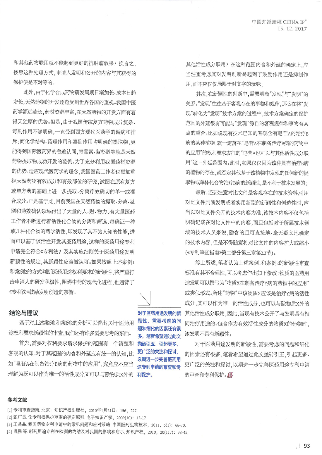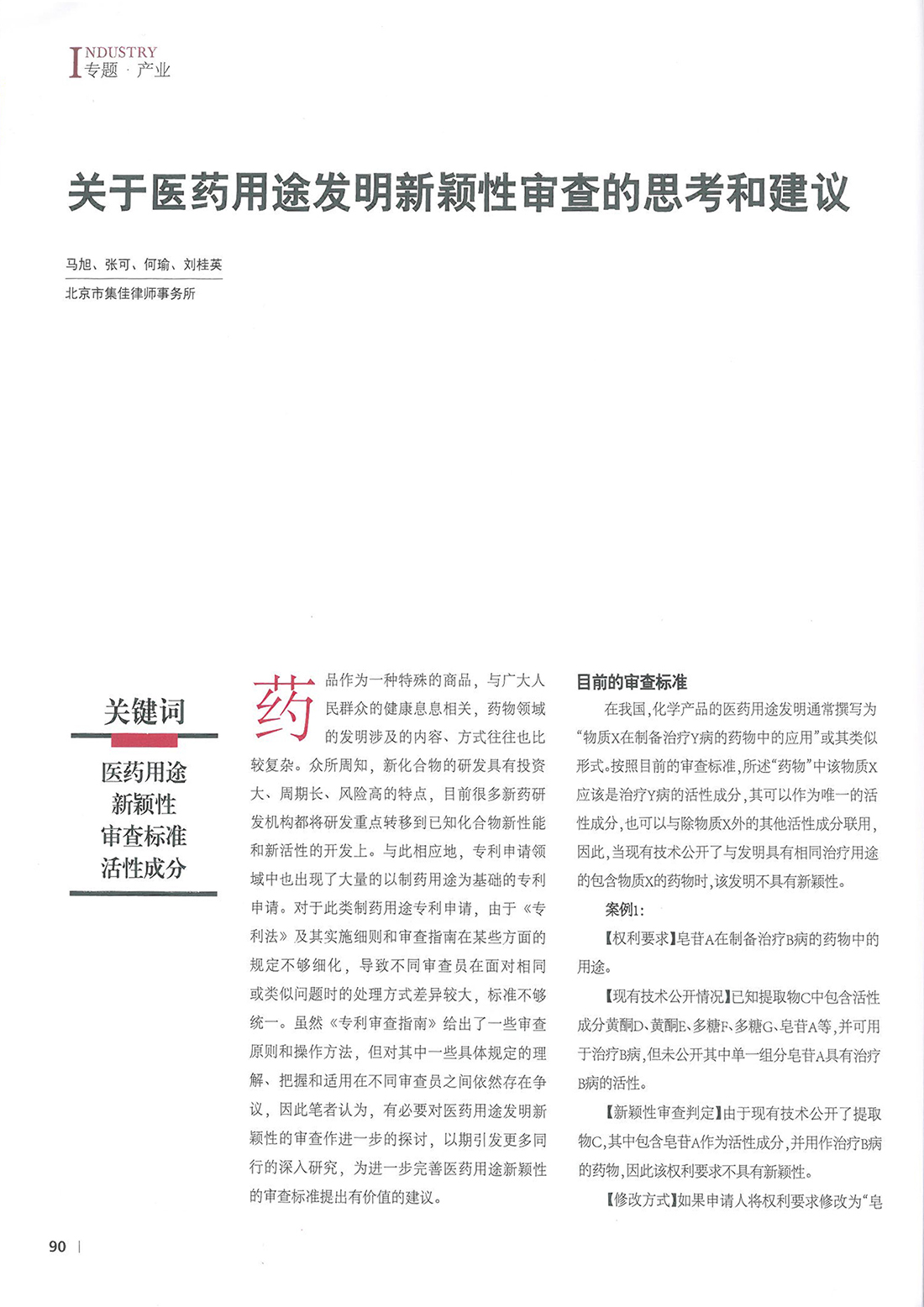 集佳文章《關于醫藥用途發明新穎性審查的思考和建議》在《中國知識產權》發表