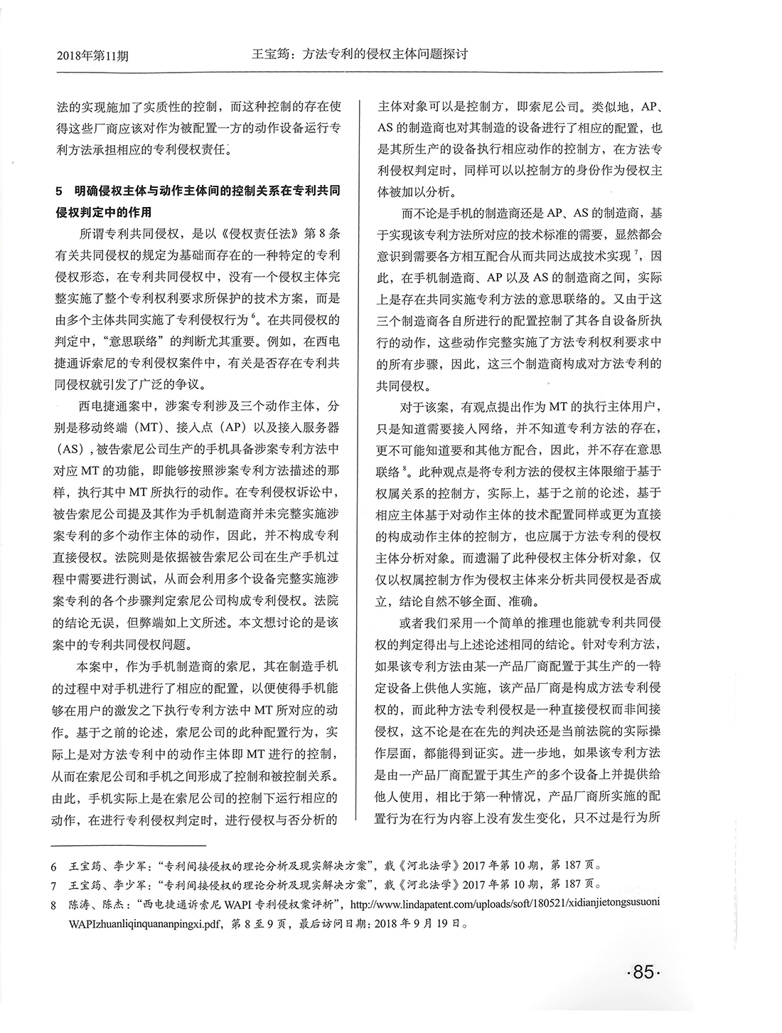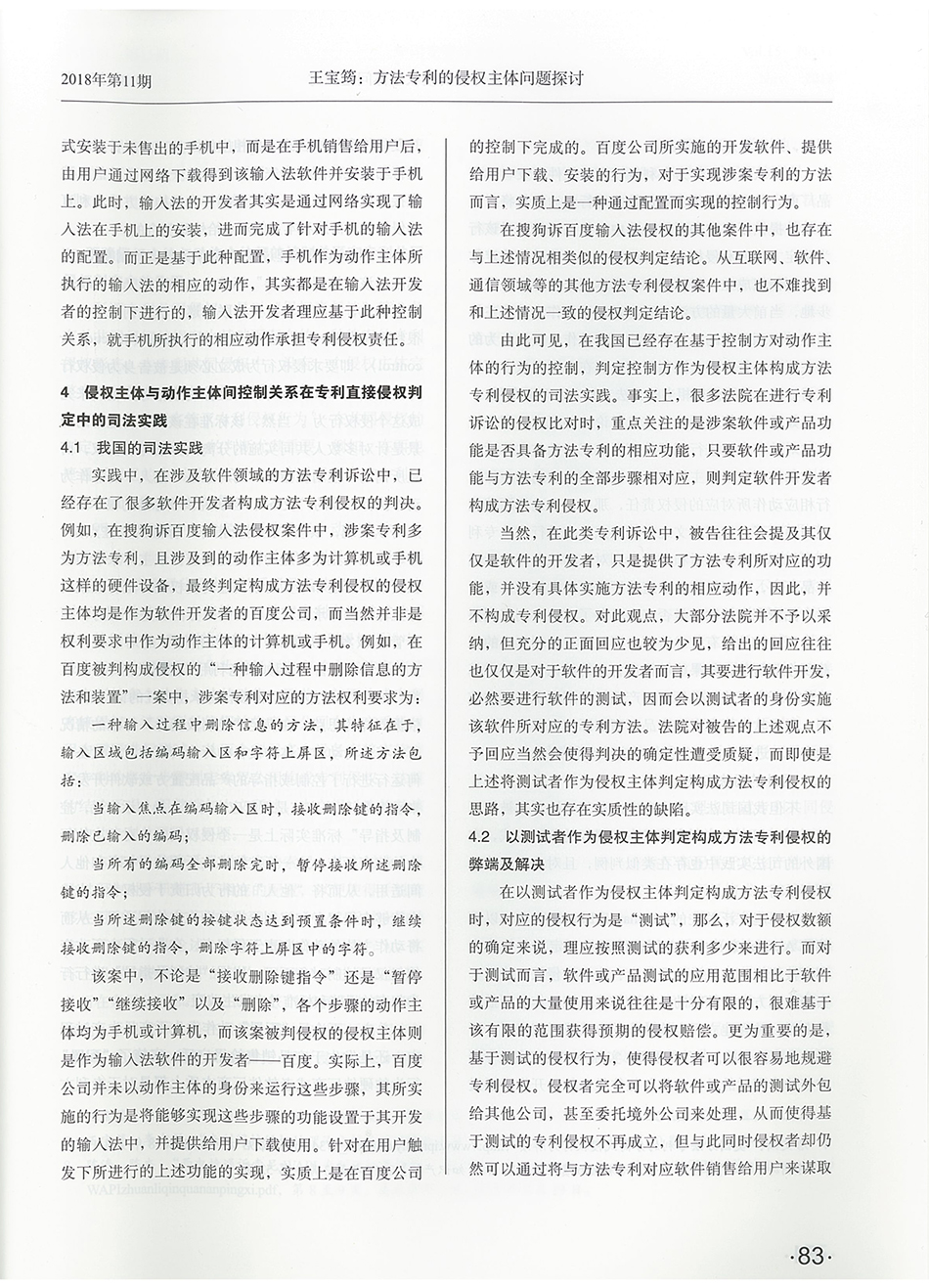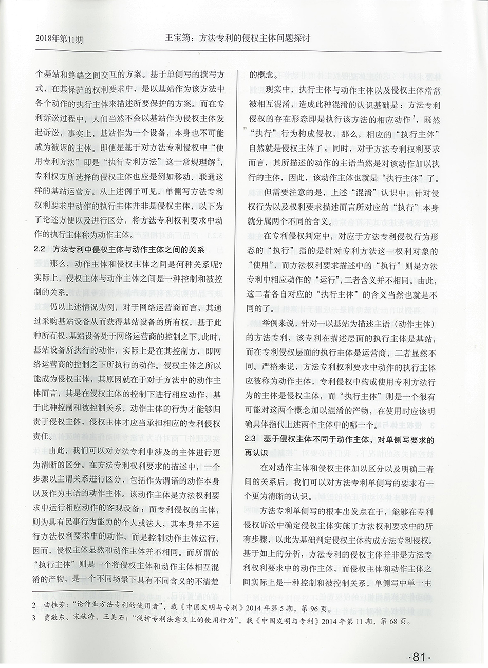 集佳文章《方法專利的侵權主體問題探討》在《發明與專利》發表
