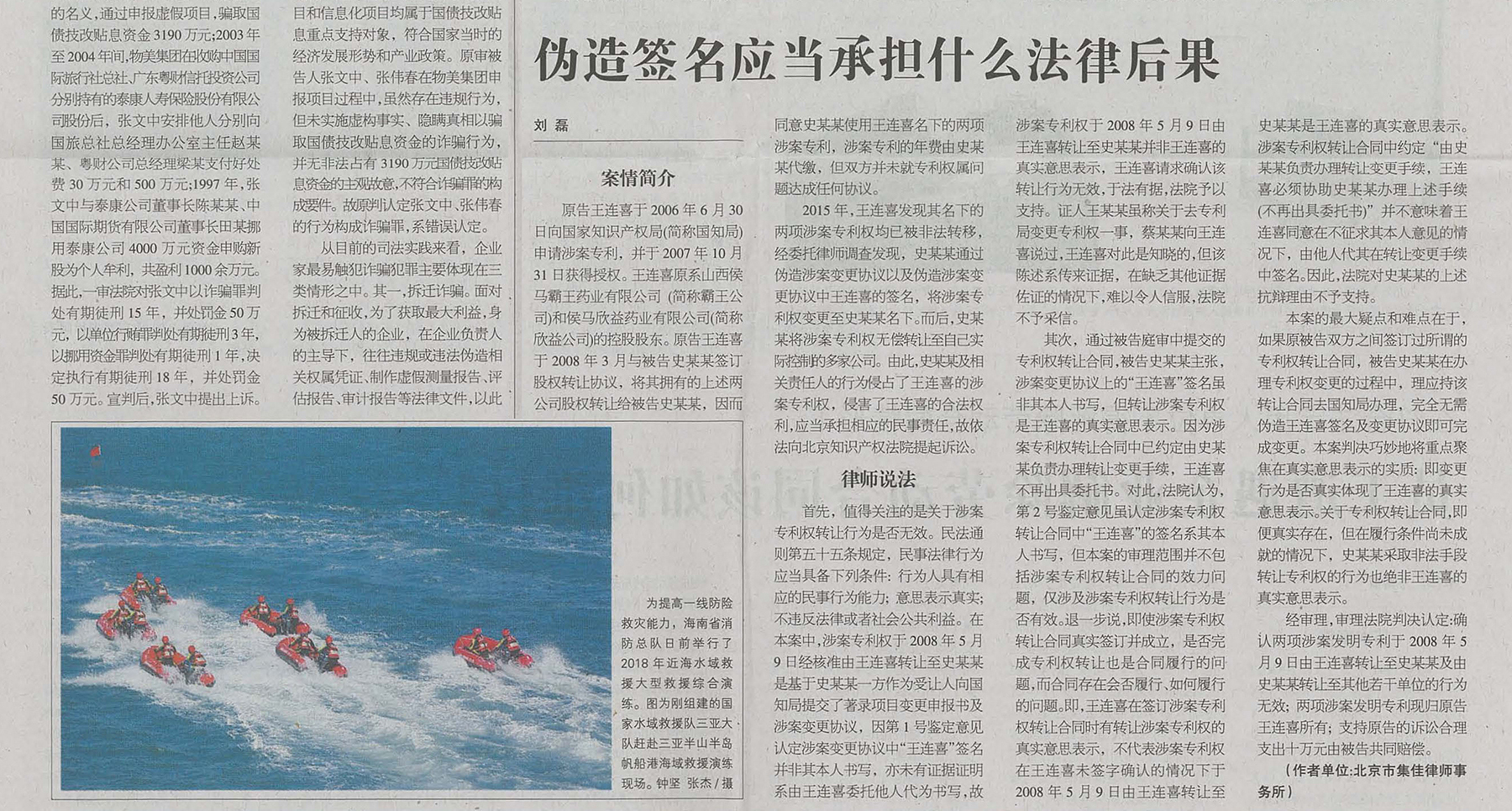 集佳文章《偽造簽名應當承擔什么法律后果》在《中國商報》發表