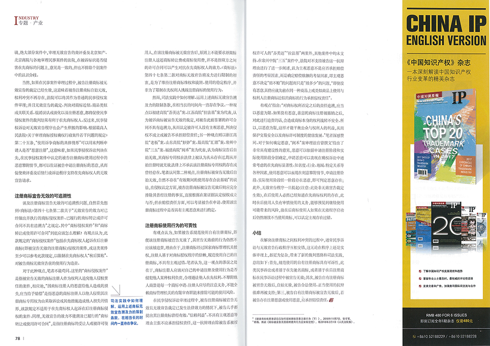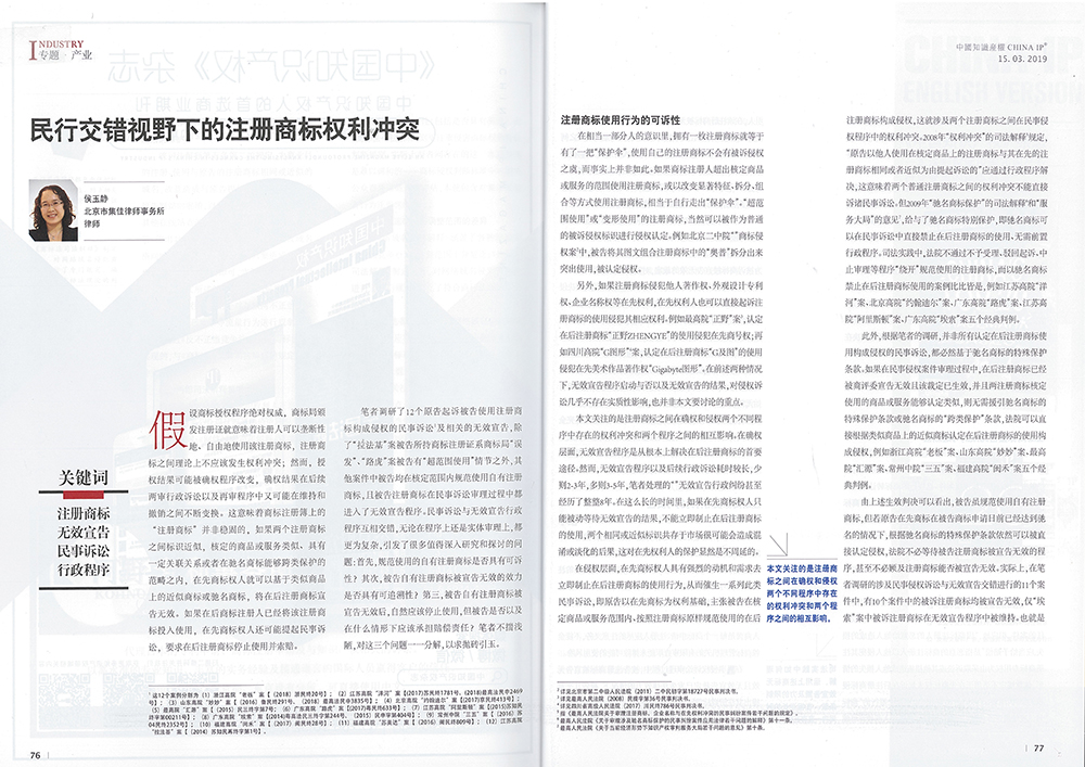 集佳文章《民行交錯視野下的注冊商標權利沖突》在《中國知識產權》發表