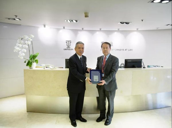 5月21日下午,三菱電機株式會社知識產權中心中心長諏訪裕治先生、三菱電機株式會社知識產權中心手島悠太先生、三菱電機(中國)有限公司知識產權室室長伊達研郎先生、三菱電機(中國)有限公司知識產權室馮文先生一行四人專程來訪,感謝集佳和北京集慧智佳知識產權管理咨詢股份有限公司在過去的一年中對于三菱電機株式會社在中國的知識產權活動做出了杰出貢獻,并向集佳和集慧智佳進行表彰,頒發了表彰盾。據悉,集佳和集慧智佳是2018年度獲三菱電機株式會社表彰的唯二中國知識產權服務機構。