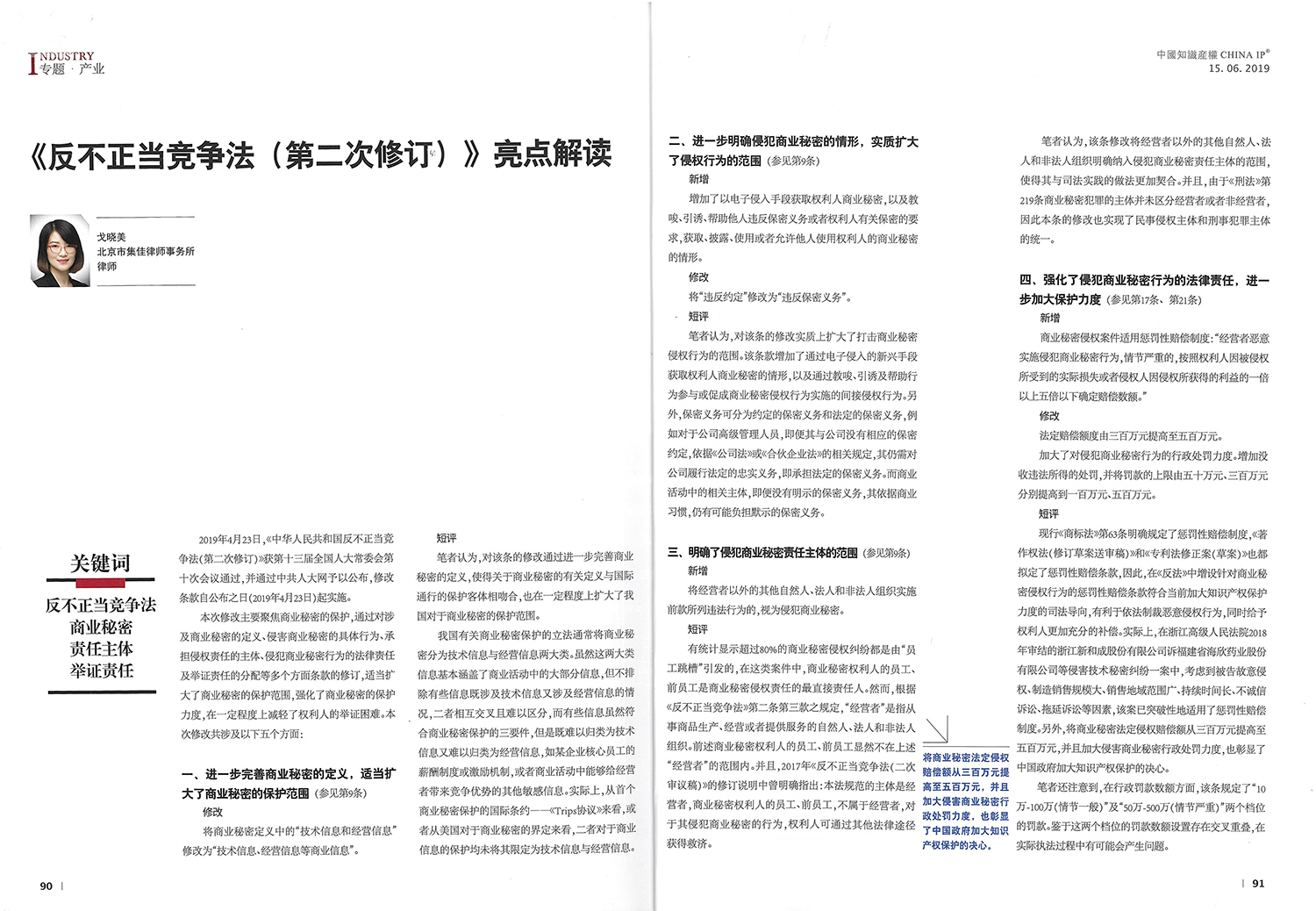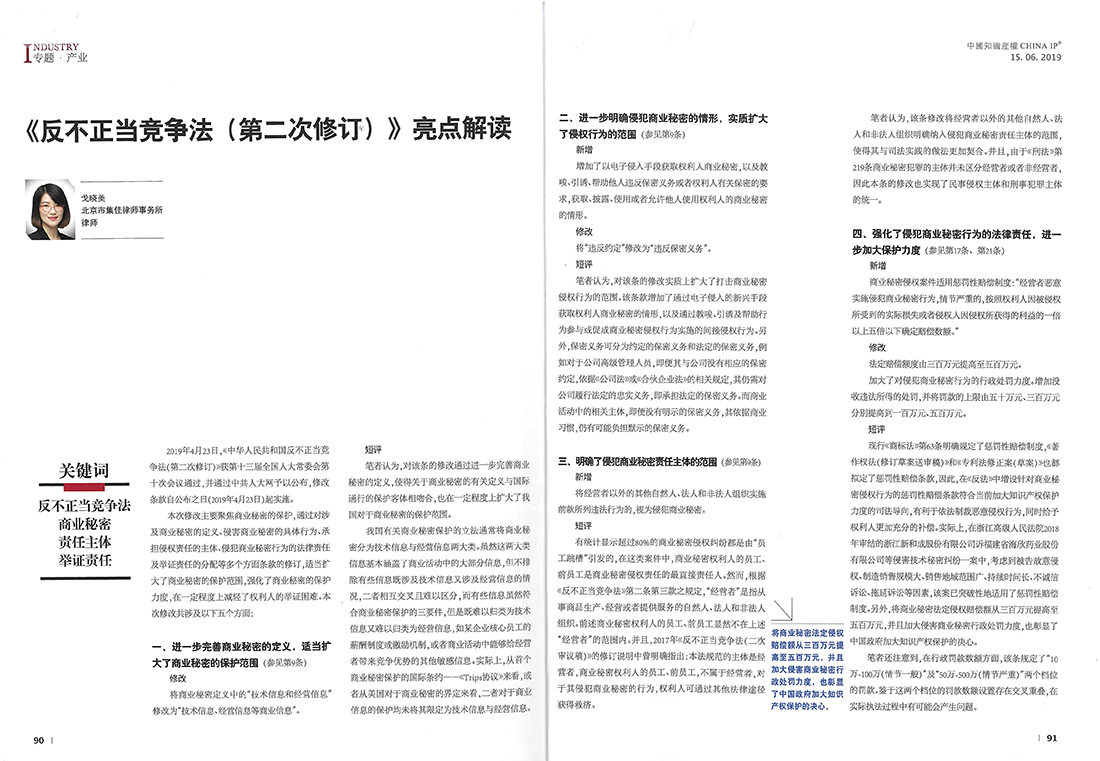 集佳文章《《反不正當競爭法(第二次修訂)》亮點解讀》在《中國知識產權》發表