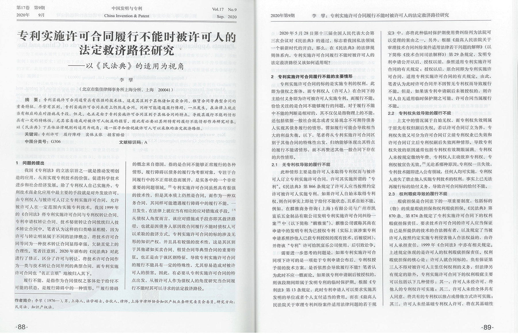 集佳文章《專利實施許可合同履行不能時被許可人的法定救濟路徑研究》在《中國發明與專利》發表