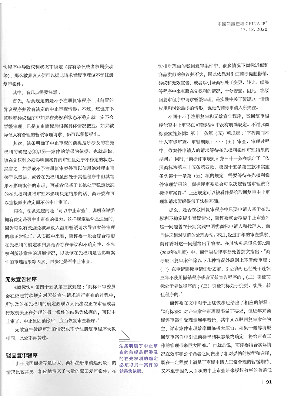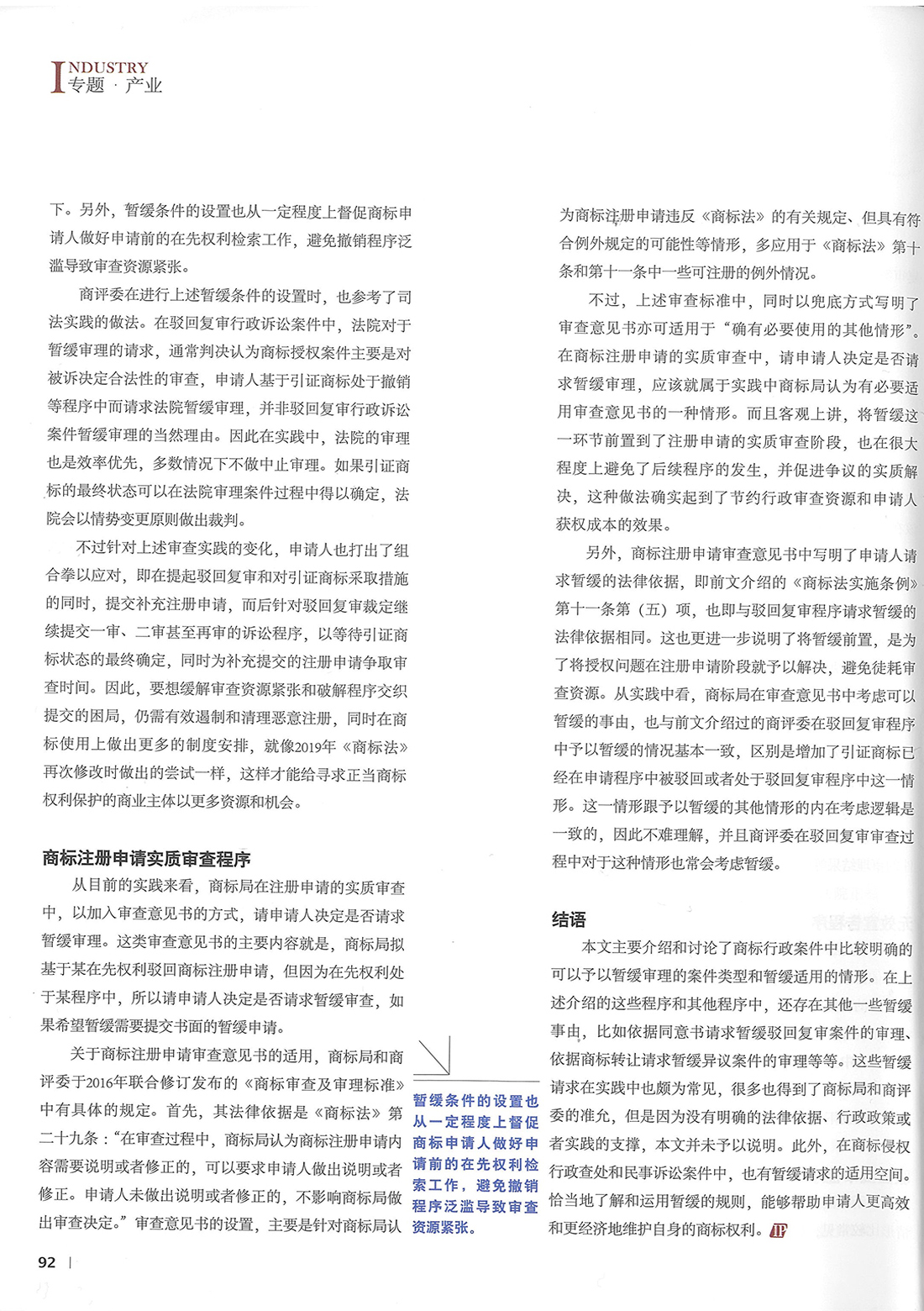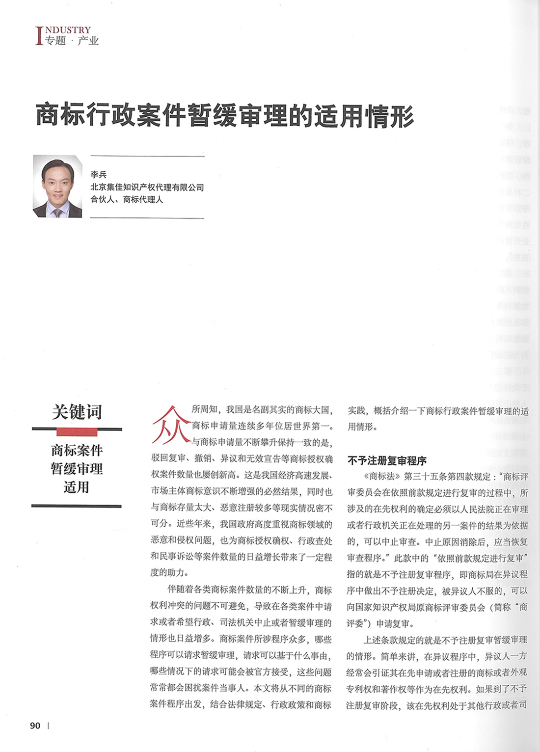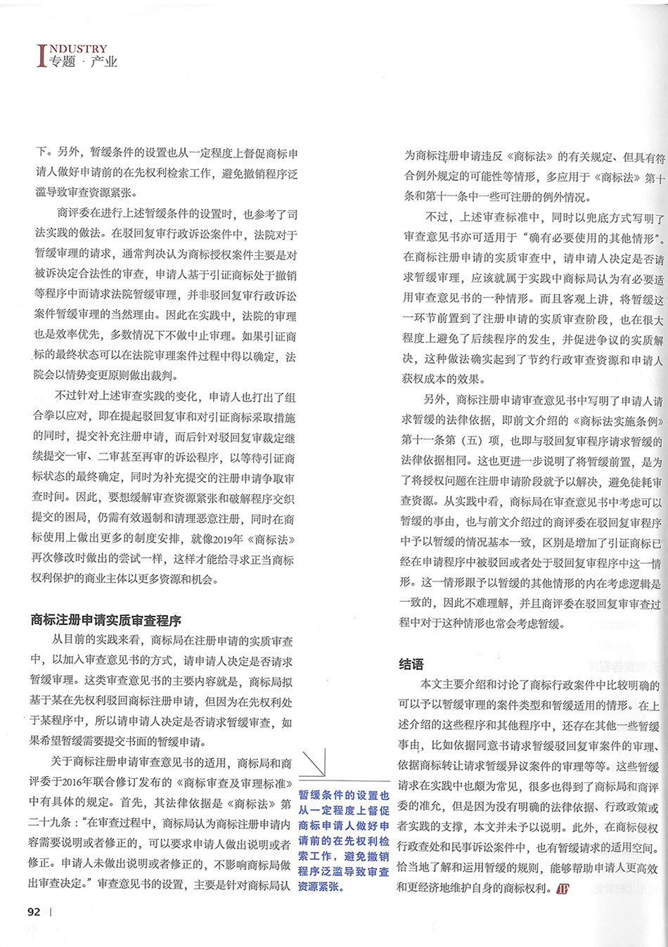 集佳文章《商標行政案件暫緩審理的適用情形》在《中國知識產權》發表