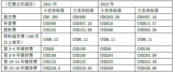 加拿大小實體官費與大實體官費標準,對比如下(2022年1月1日起,加拿大官費普降0.2%):