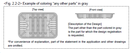 當通過著色來區分保護部分和不保護部分時,同時在外觀設計說明中應指出“除著色部分(如除灰色部分)以外的任何部分”是作為部分外觀設計請求進行保護的部分,如下圖10所示。可以看出,這一點跟歐美的涂覆或者淡化處理是有所區別的,日本允許用不同的顏色加上語言說明來進行區分。