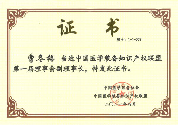 2021年4月10日,中國醫學裝備知識產權聯盟(以下簡稱“聯盟”)成立會暨中國醫學裝備知識產權發展論壇在北京成功召開。國家衛生健康委、工業和信息化部、國家知識產權局、中國醫學裝備協會、聯盟發起單位及醫療機構、企業、金融等機構的180余名代表出席此次大會。北京集佳知識產權代理有限公司受邀成為聯盟第一屆理事會副理事長單位,集佳知識產權顧問曹冬梅當選聯盟第一屆理事會副理事長。