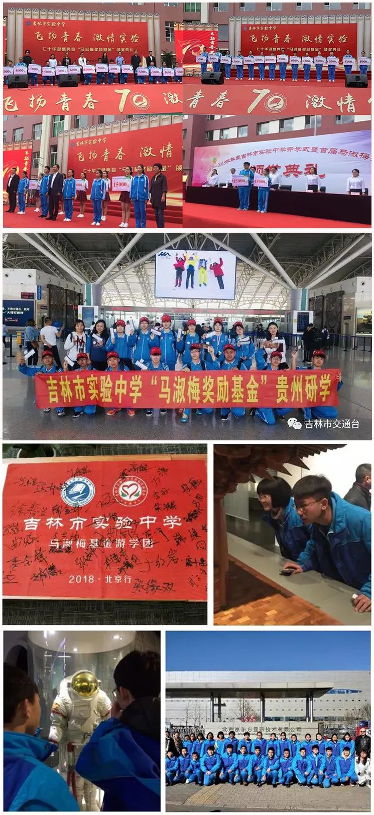 集佳于2017年在吉林市實驗中學設立公益助學基金——“馬淑梅教育獎勵基金”,每年捐贈50萬元,用于資助貧困學生讀書,獎勵優秀畢業生,鼓勵學生努力學習。多年來,該基金已累計為吉林市實驗中學數百位學子提供了獎勵和資助。同時,基金還辟出專門款項給孩子們提供實踐活動的機會,希望同學們通過研學活動,讓求知的渴望不斷壯大,希望每一位學子通過不懈的努力,成長為最優秀的自己,成長為有社會責任感、有擔當的人。
