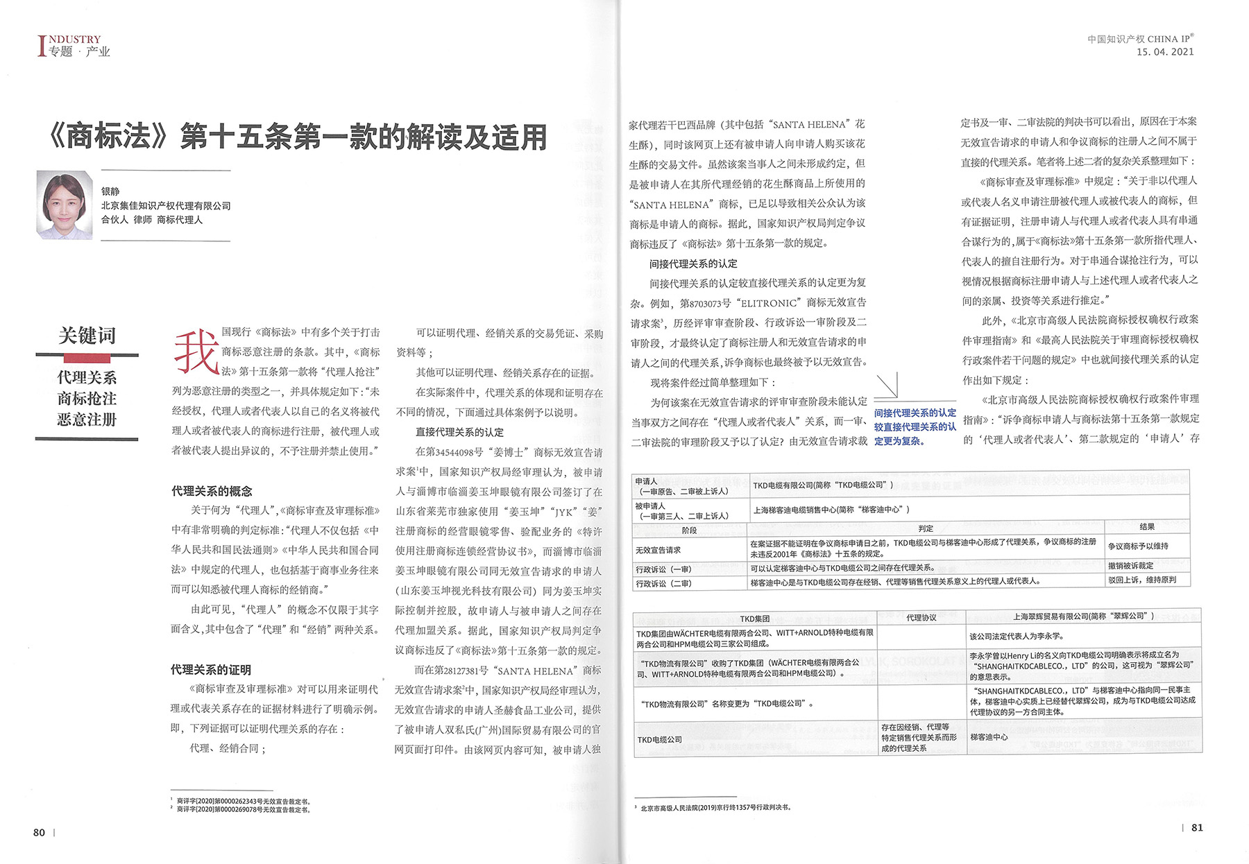 集佳文章《<商標法>第十五條第一款的解讀及適用》在《中國知識產權發表》