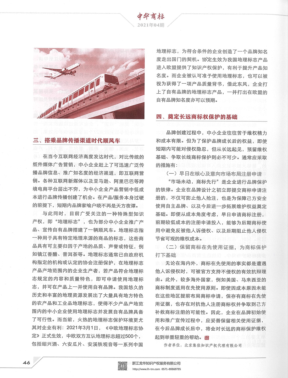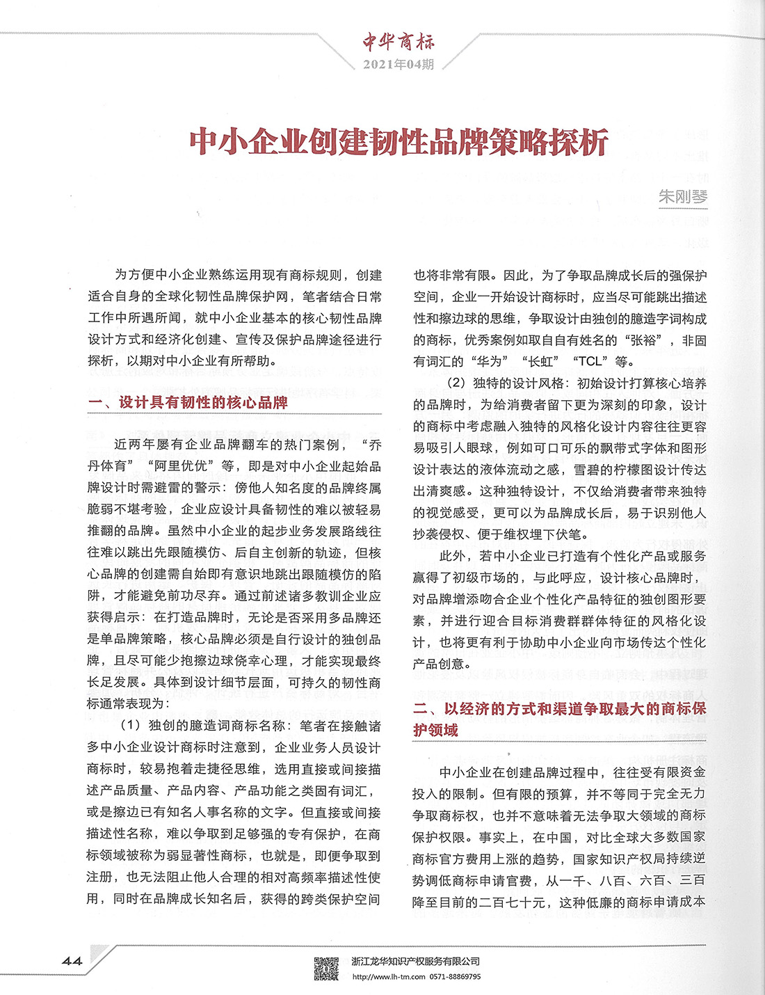 集佳文章《中小企業創建韌性品牌策略探析》在《中華商標》發表