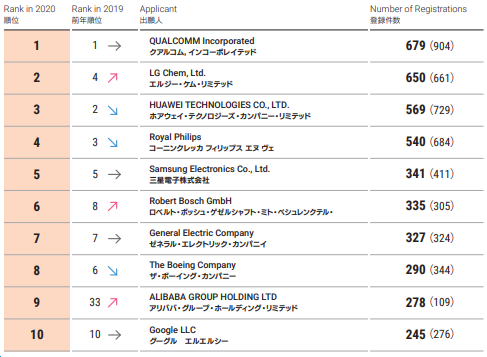 ?2020年前10位日本發明專利外國申請人
