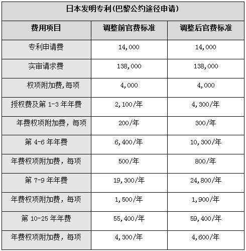 本次官費調整專利發明方面主要是上調了年費,具體如下(幣種:日元):