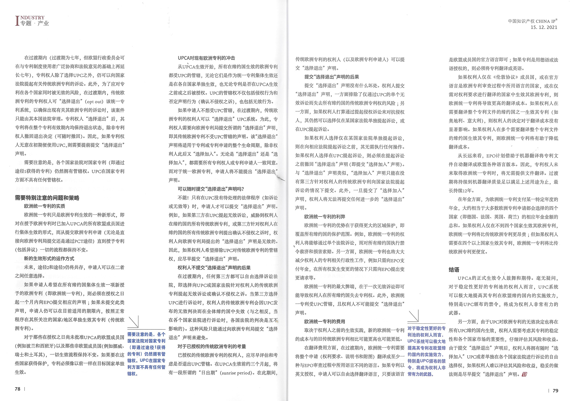 集佳文章《歐洲統一專利系統生效在即,對現有和未來的歐洲專利有何影響?》在《中國知識產權》發表