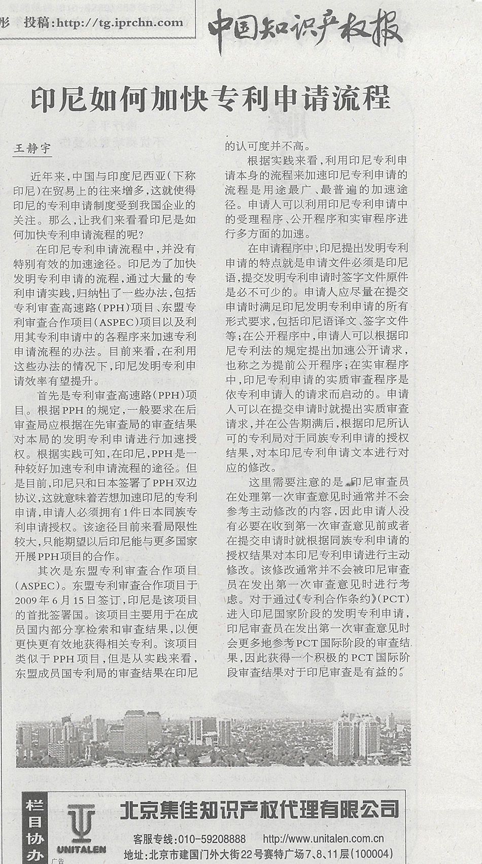 集佳文章《印尼如何加快專利申請流程》在《中國知識產權報》發表