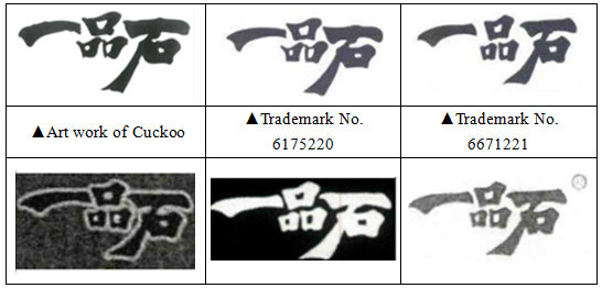 The above two trademarks of ZHENG were approved for registration in February and May 2010 respectively. Five years after the two trademarks were registered, ZHENG began to file administrative complaints to the industry and commerce department for trademark infringement of Qingdao Cuckoo and its distributors since November 2015. Cuckoo also filed applications for 3-year non-use revocation and invalidation against ZHENG's "一品石" (Yipinshi) trademarks since 2016 after being sued by the administrative complaints. However, due to the approval and registration of the trademarks for five years and other factors, the registered trademarks had not been successfully revoked or invalidated.